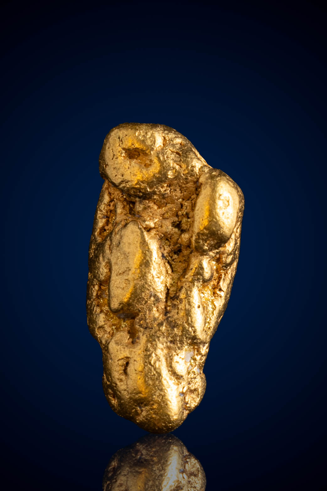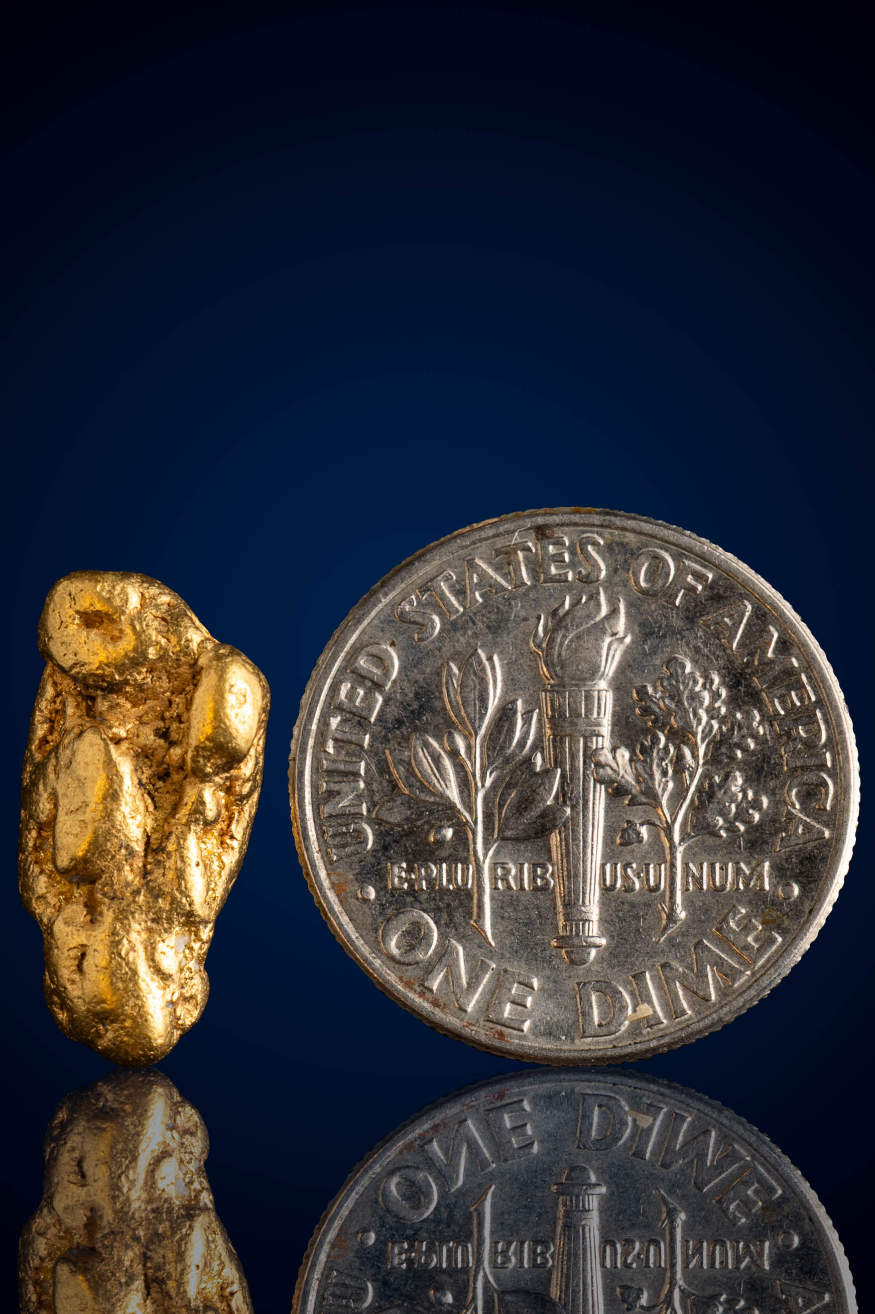 Featuring a brilliant warm-yellow color, rugged texture, and impressive natural form, this piece is completely untreated and unrefined, exactly as it was found. Alaskan gold nuggets are known for their high purity and distinctive, water-worn shapes, making each one a unique collector’s treasure.