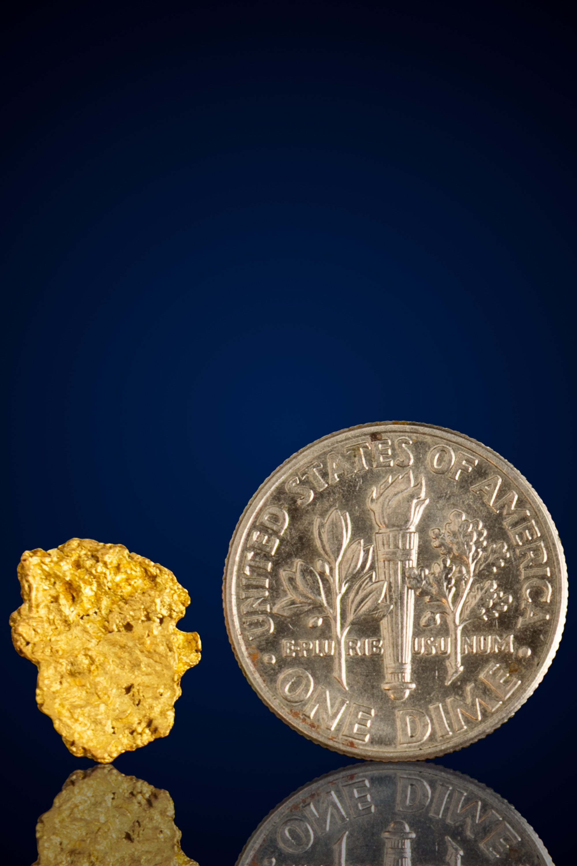 Featuring a brilliant warm-yellow color, rugged texture, and impressive natural form, this piece is completely untreated and unrefined, exactly as it was found. Alaskan gold nuggets are known for their high purity and distinctive, water-worn shapes, making each one a unique collector’s treasure.