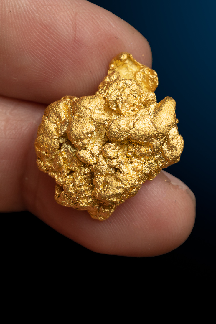 Even rarer are crystallized gold specimens and only about 0.04% of the gold in the world is crystallized. These natural gold nuggets and gold specimens are true - one of a kind - masterpieces from the earth’s natural elements and are found mostly in pockets where the gold was able to crystallize while it formed, much the same way other crystals form deep inside the earth.