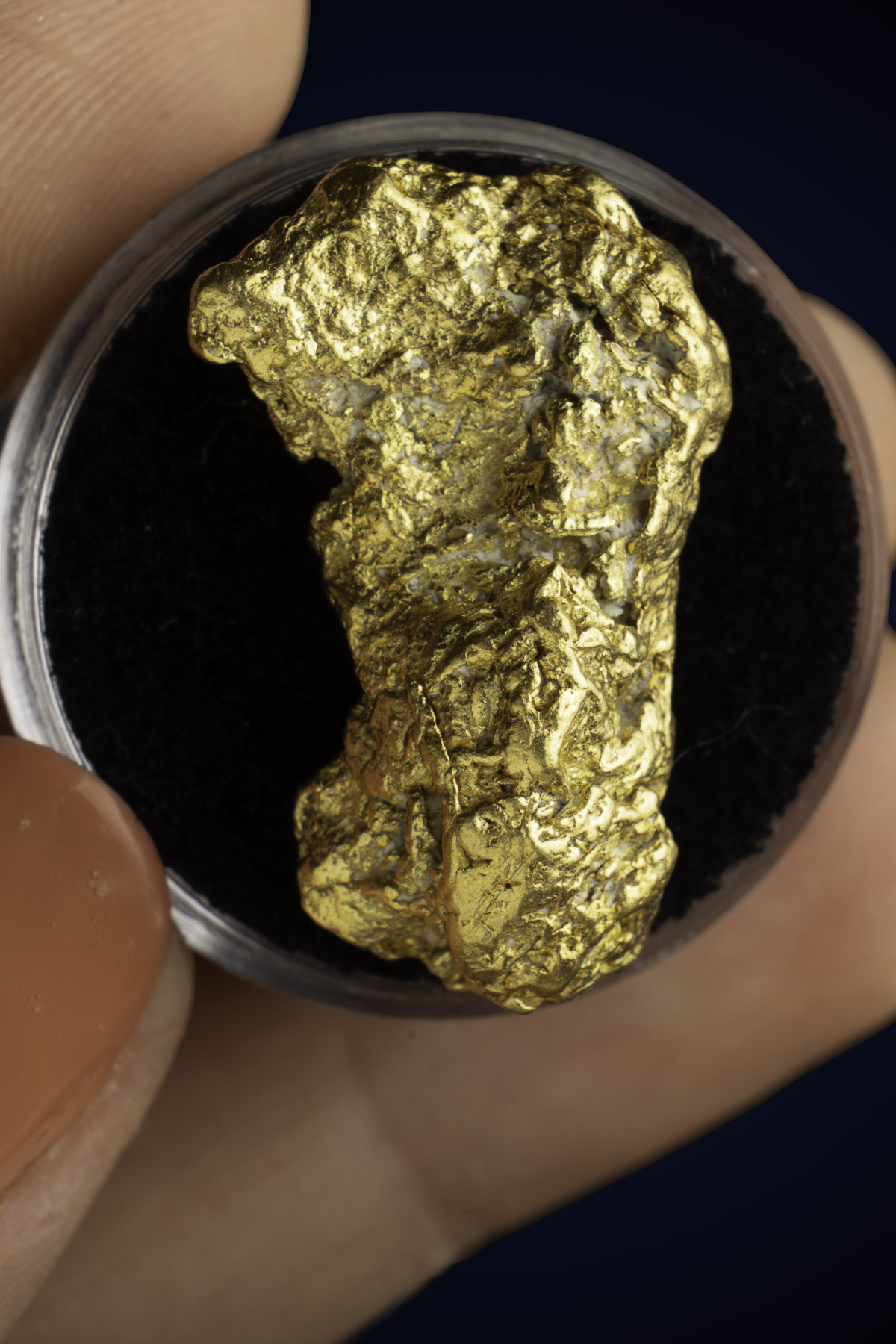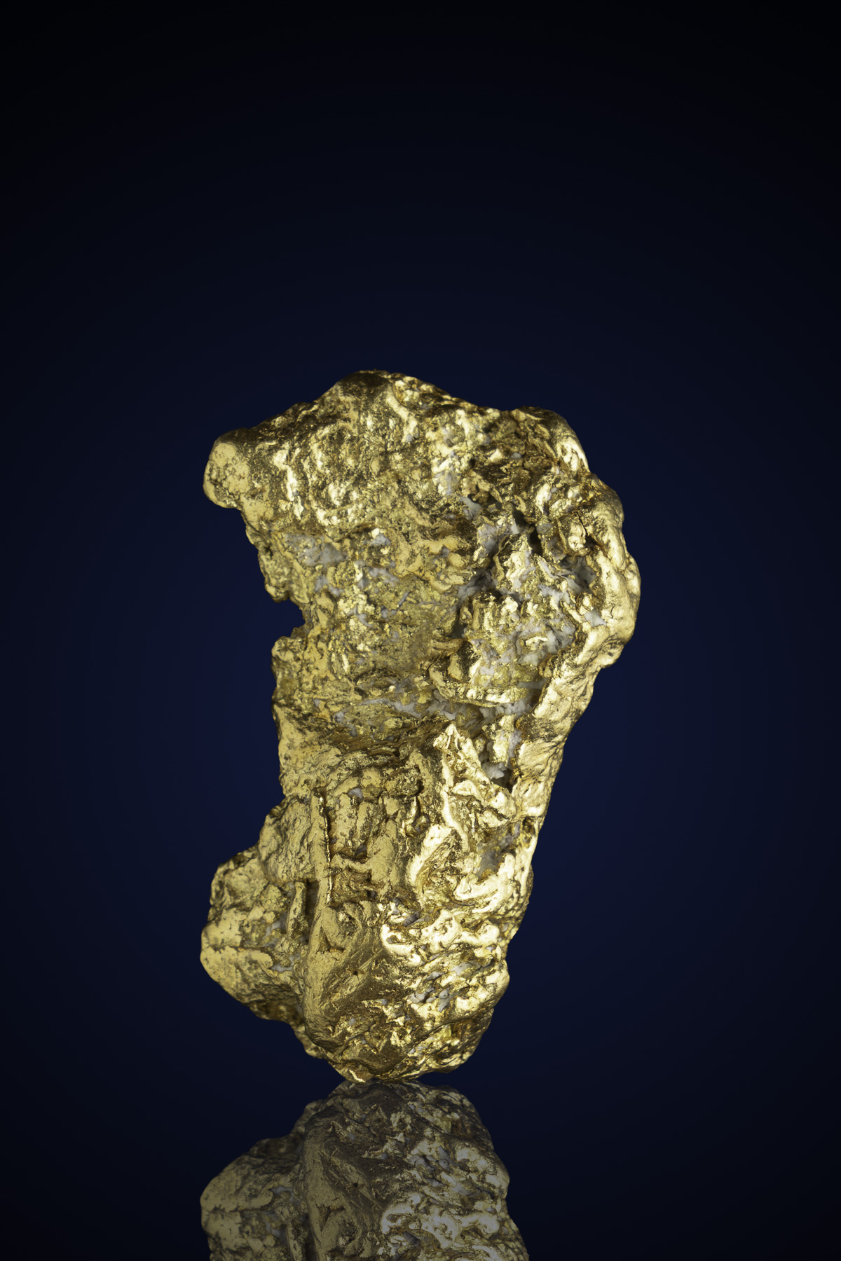 Even rarer are crystallized gold specimens and only about 0.04% of the gold in the world is crystallized. These natural gold nuggets and gold specimens are true - one of a kind - masterpieces from the earth’s natural elements and are found mostly in pockets where the gold was able to crystallize while it formed, much the same way other crystals form deep inside the earth.