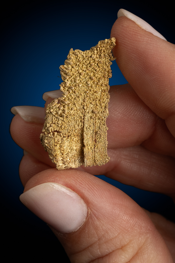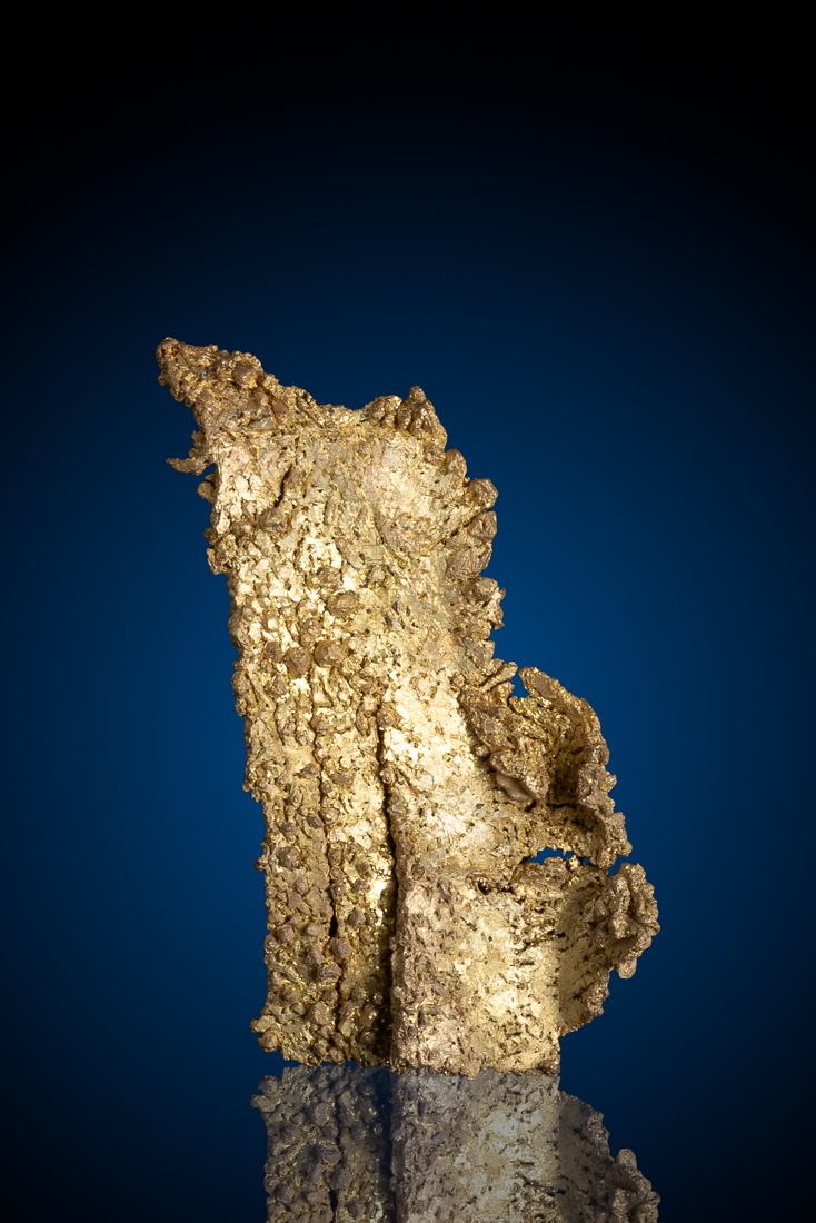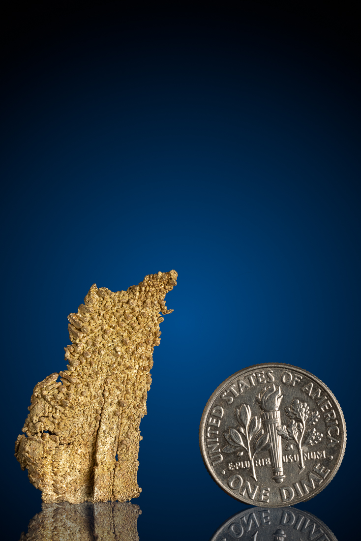 Round Mountain is well known for producing gold with this signature granular and micro-crystalline character, and this specimen is an excellent representation of that locality. With its uncommon shape, intricate surface detail, and unmistakable Nevada character, it makes a standout display piece and a highly desirable addition to any serious gold collection.