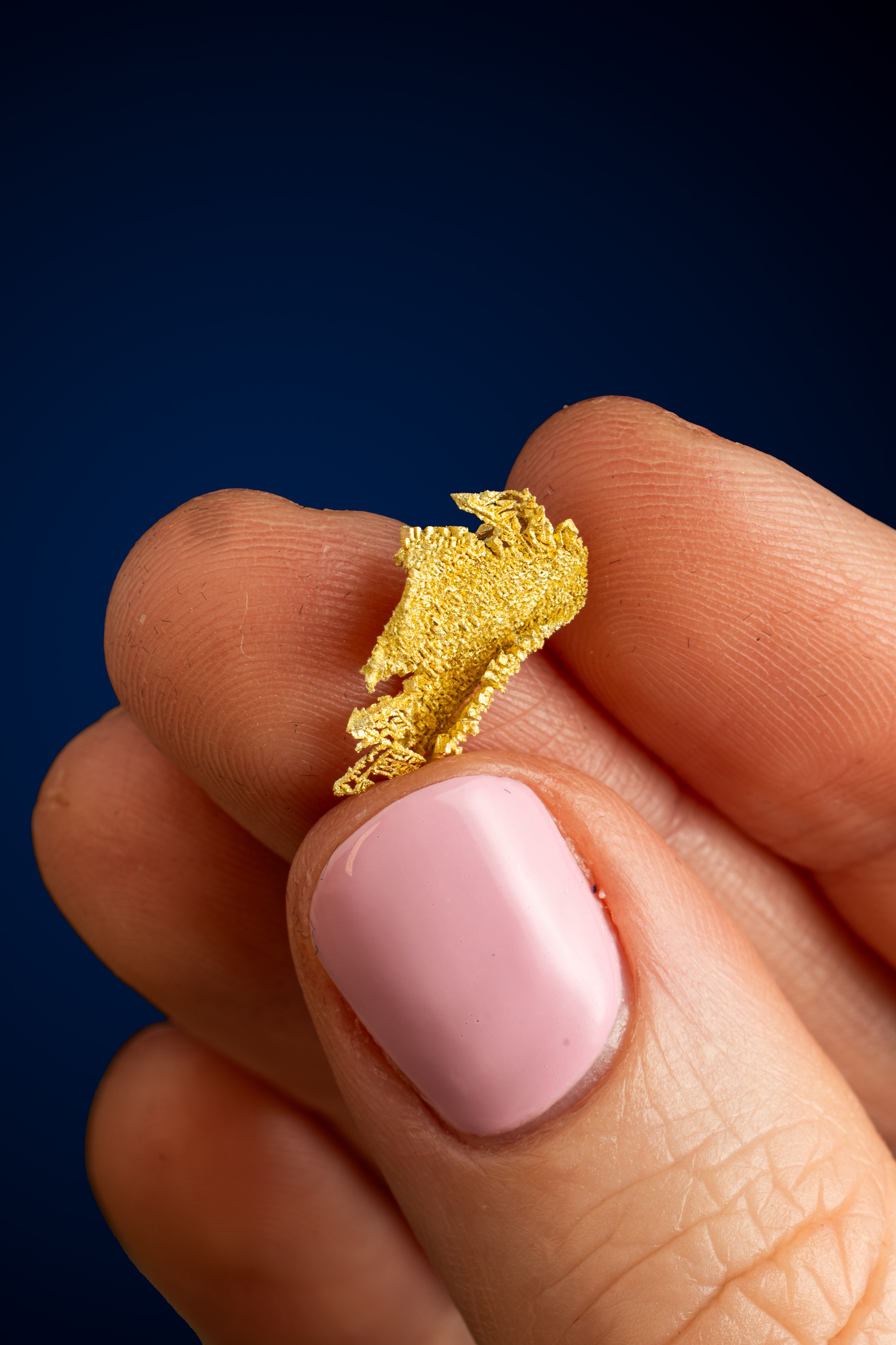Even rarer are crystallized gold specimens and only about 0.04% of the gold in the world is crystallized. These natural gold nuggets and gold specimens are true - one of a kind - masterpieces from the earth’s natural elements and are found mostly in pockets where the gold was able to crystallize while it formed, much the same way other crystals form deep inside the earth.