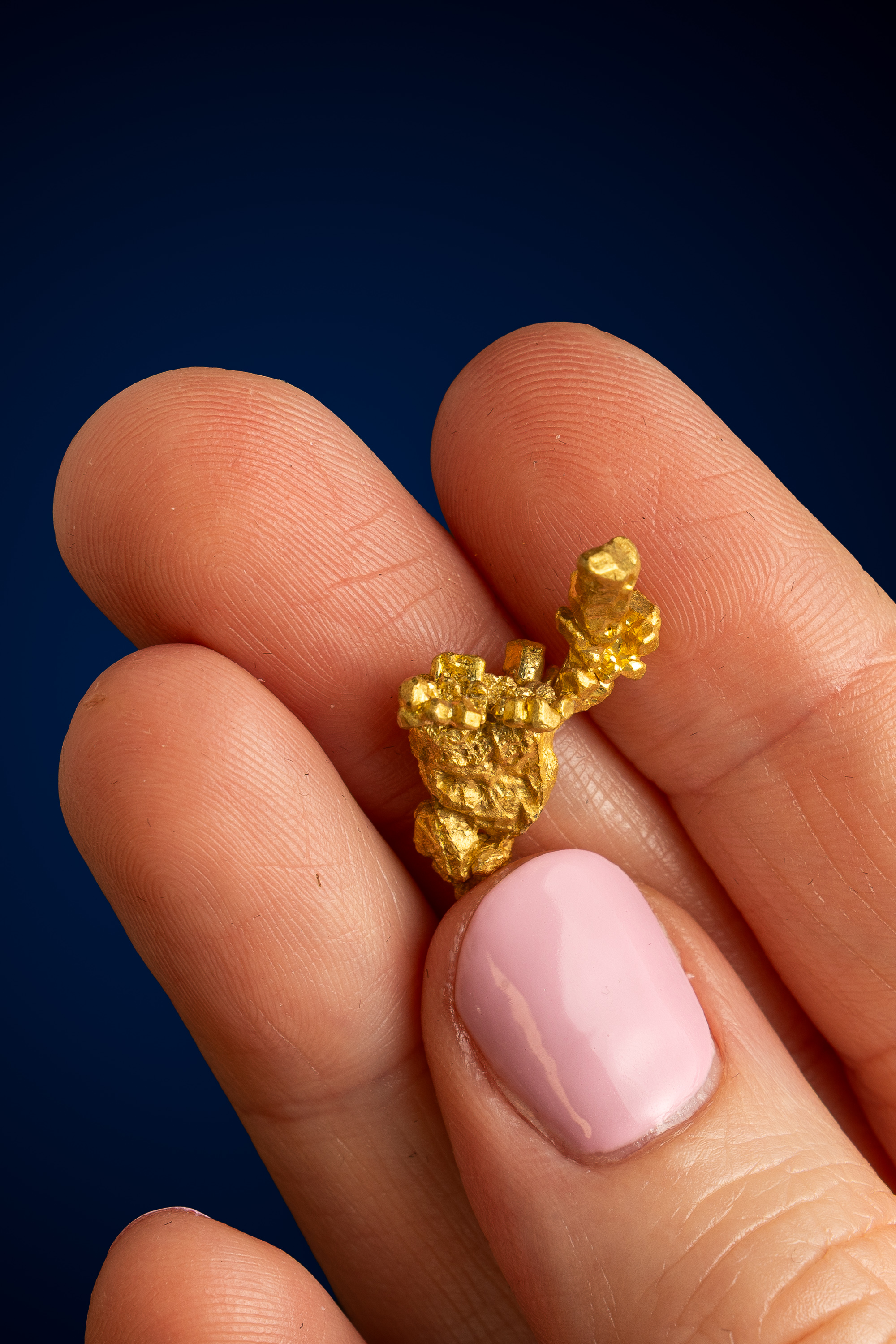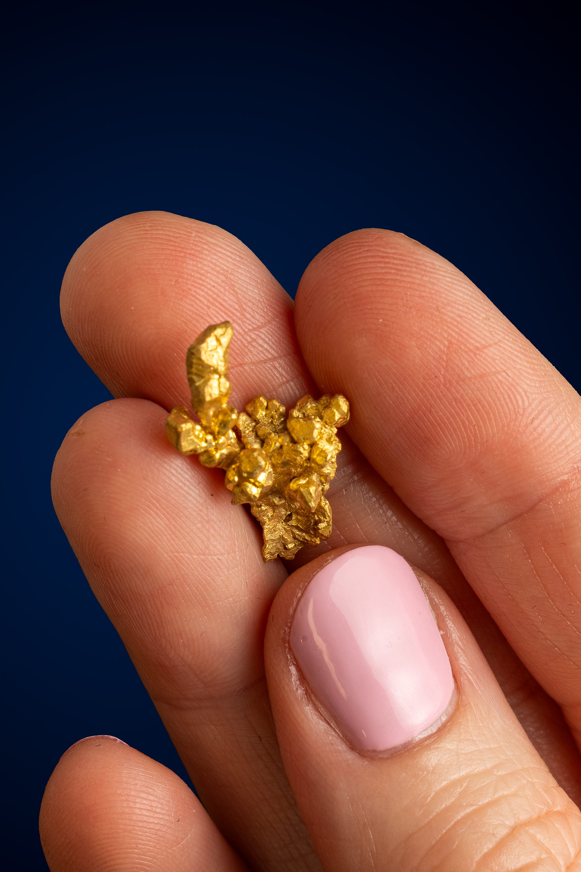 Even rarer are crystallized gold specimens and only about 0.04% of the gold in the world is crystallized. These natural gold nuggets and gold specimens are true - one of a kind - masterpieces from the earth’s natural elements and are found mostly in pockets where the gold was able to crystallize while it formed, much the same way other crystals form deep inside the earth.
