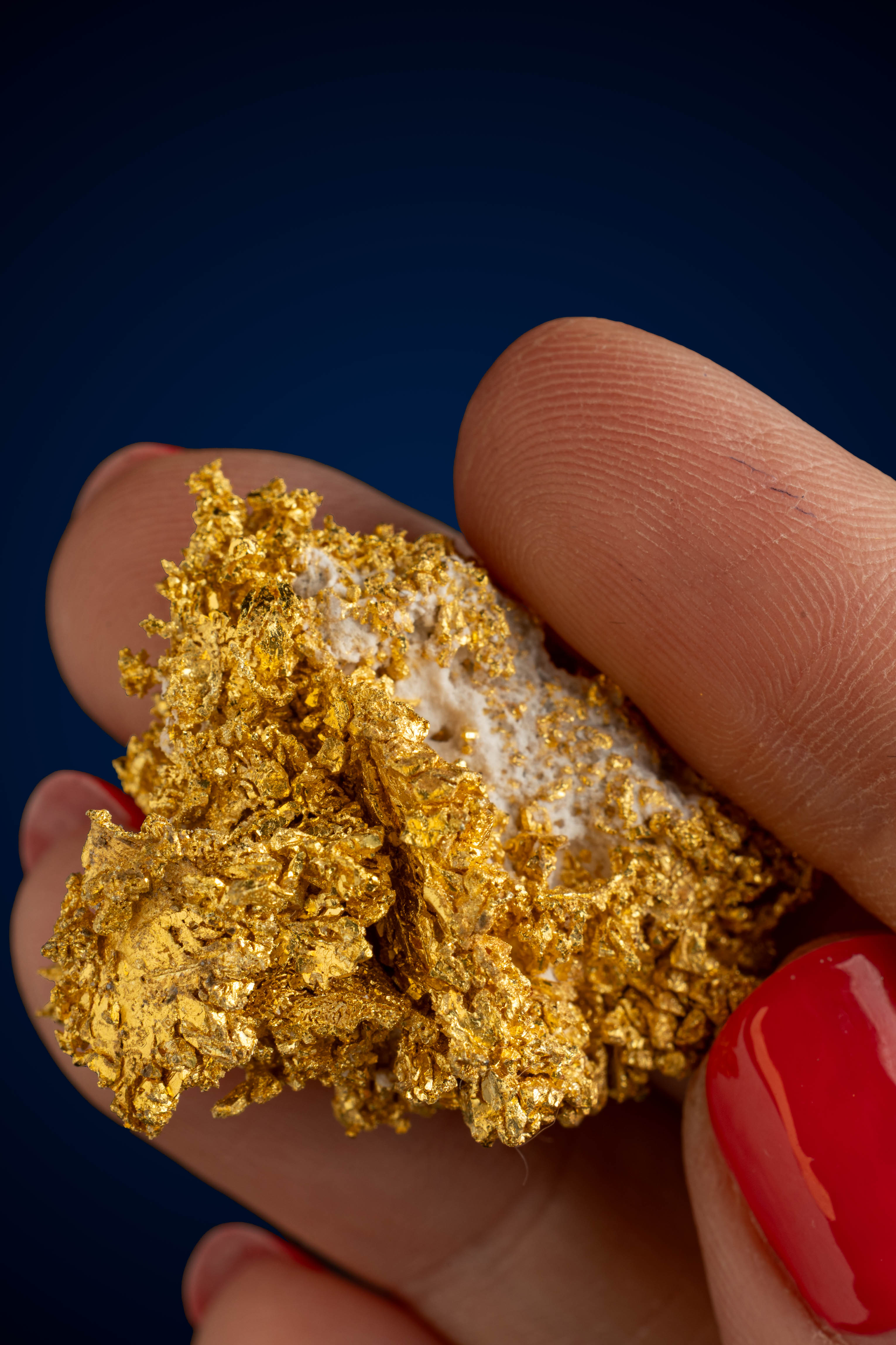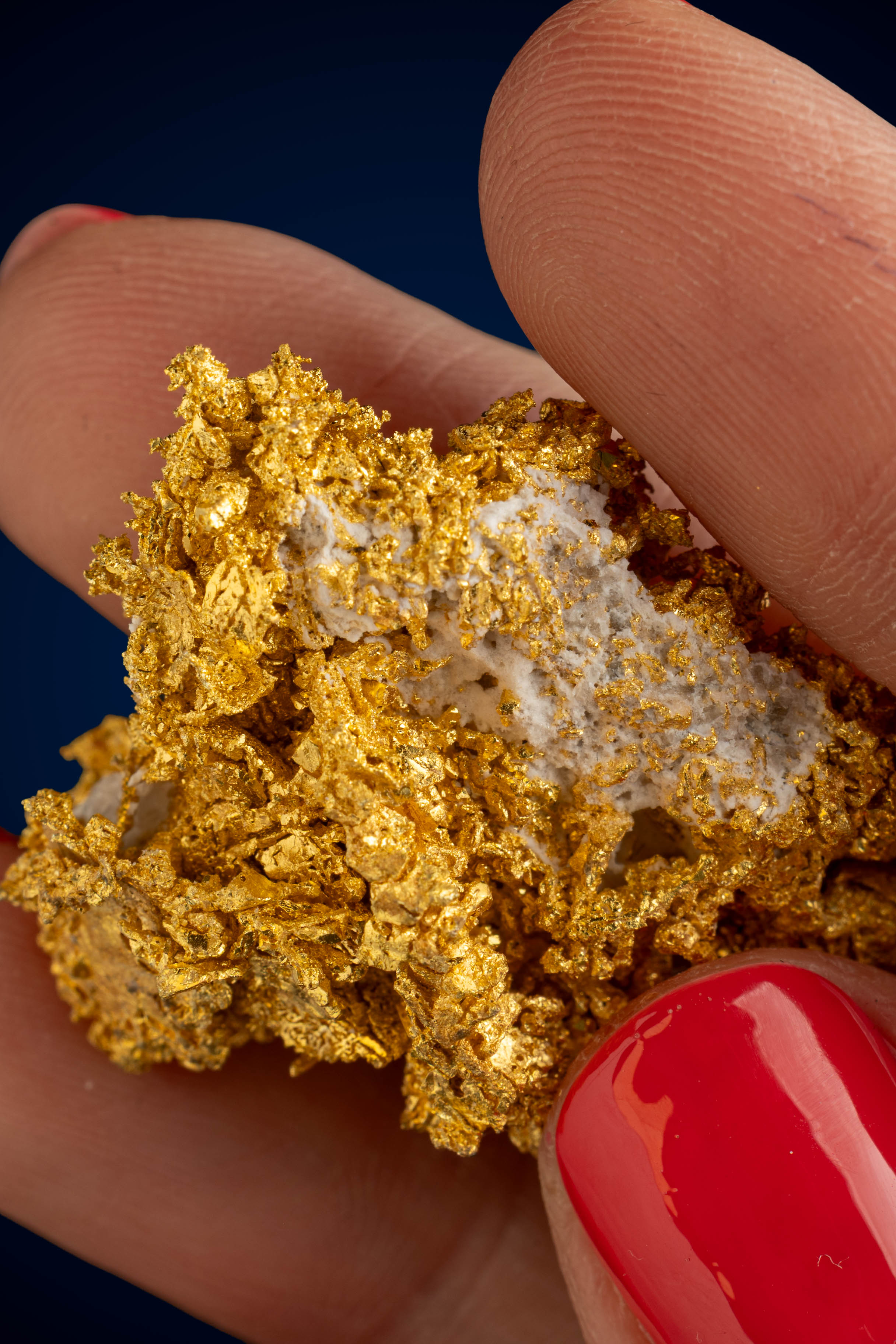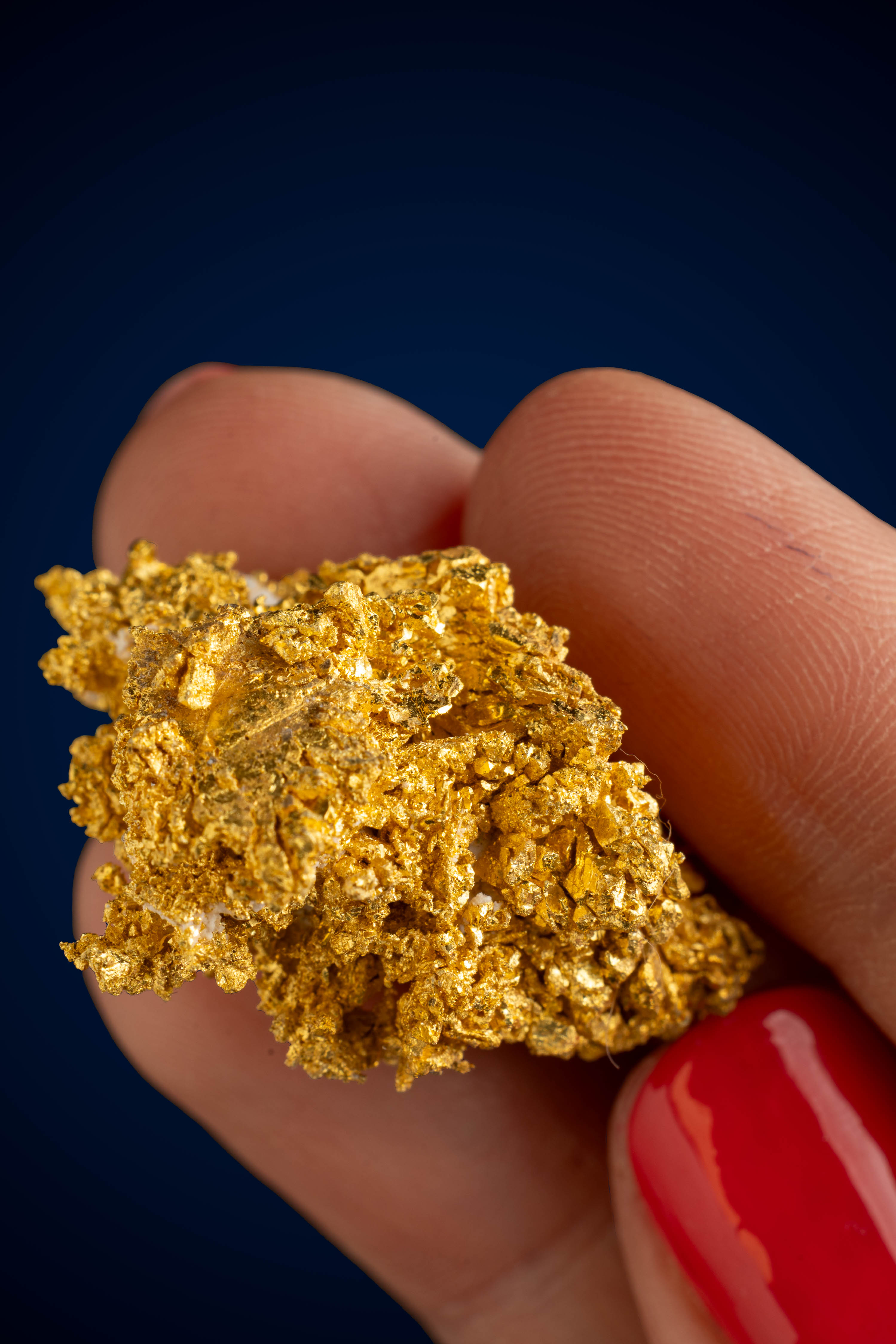 Even rarer are crystallized gold specimens and only about 0.04% of the gold in the world is crystallized. These natural gold nuggets and gold specimens are true - one of a kind - masterpieces from the earth’s natural elements and are found mostly in pockets where the gold was able to crystallize while it formed, much the same way other crystals form deep inside the earth.