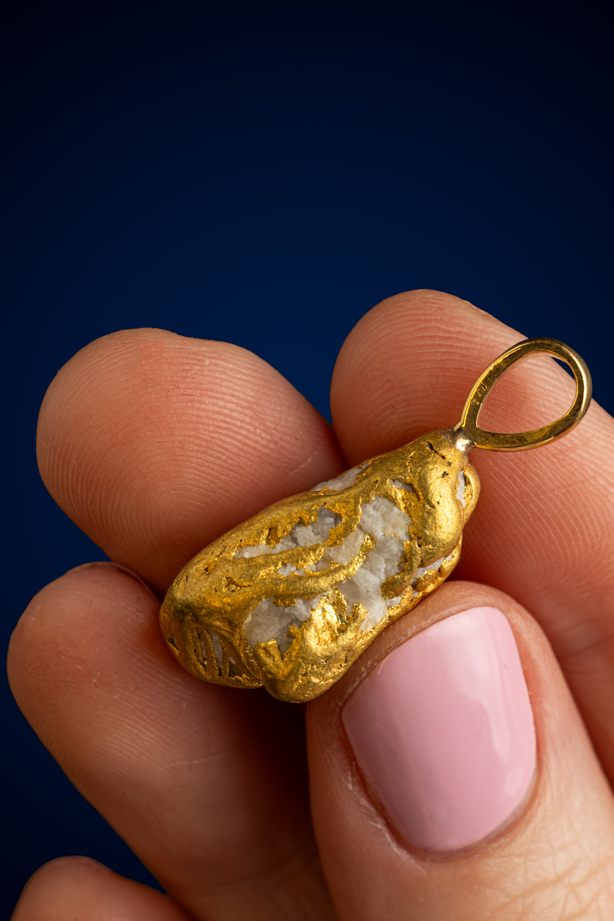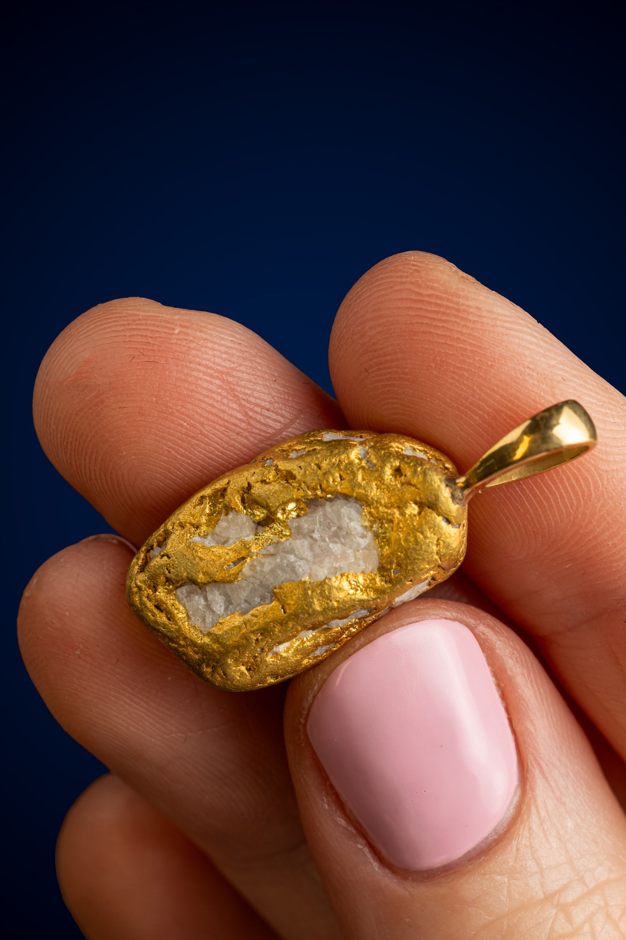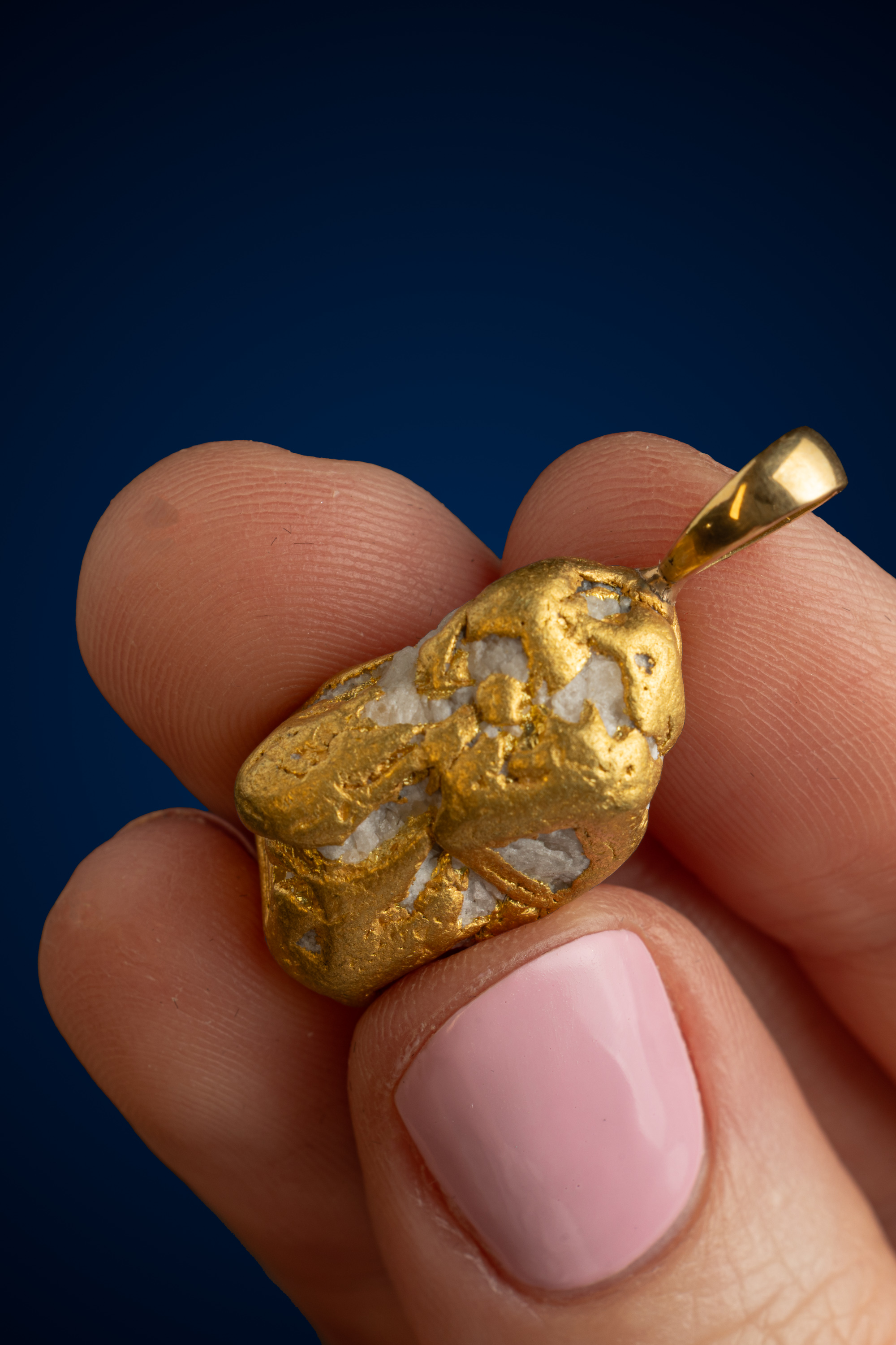 Expertly finished with a solid gold bail, the setting is clean and understated — designed to complement the nugget’s organic form while allowing it to remain the focal point. The bail is generously sized to accommodate a variety of chains, making it both versatile and wearable.