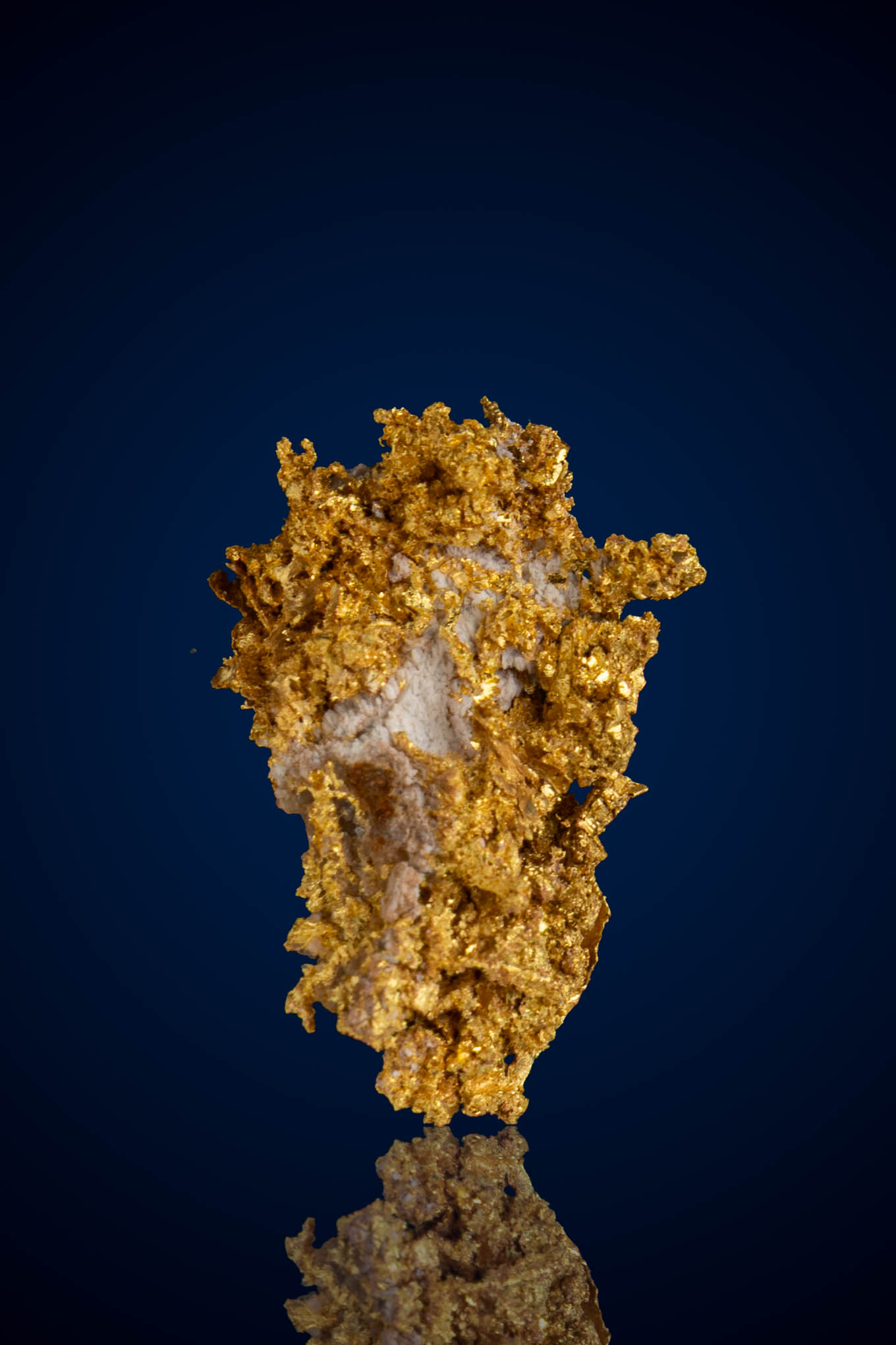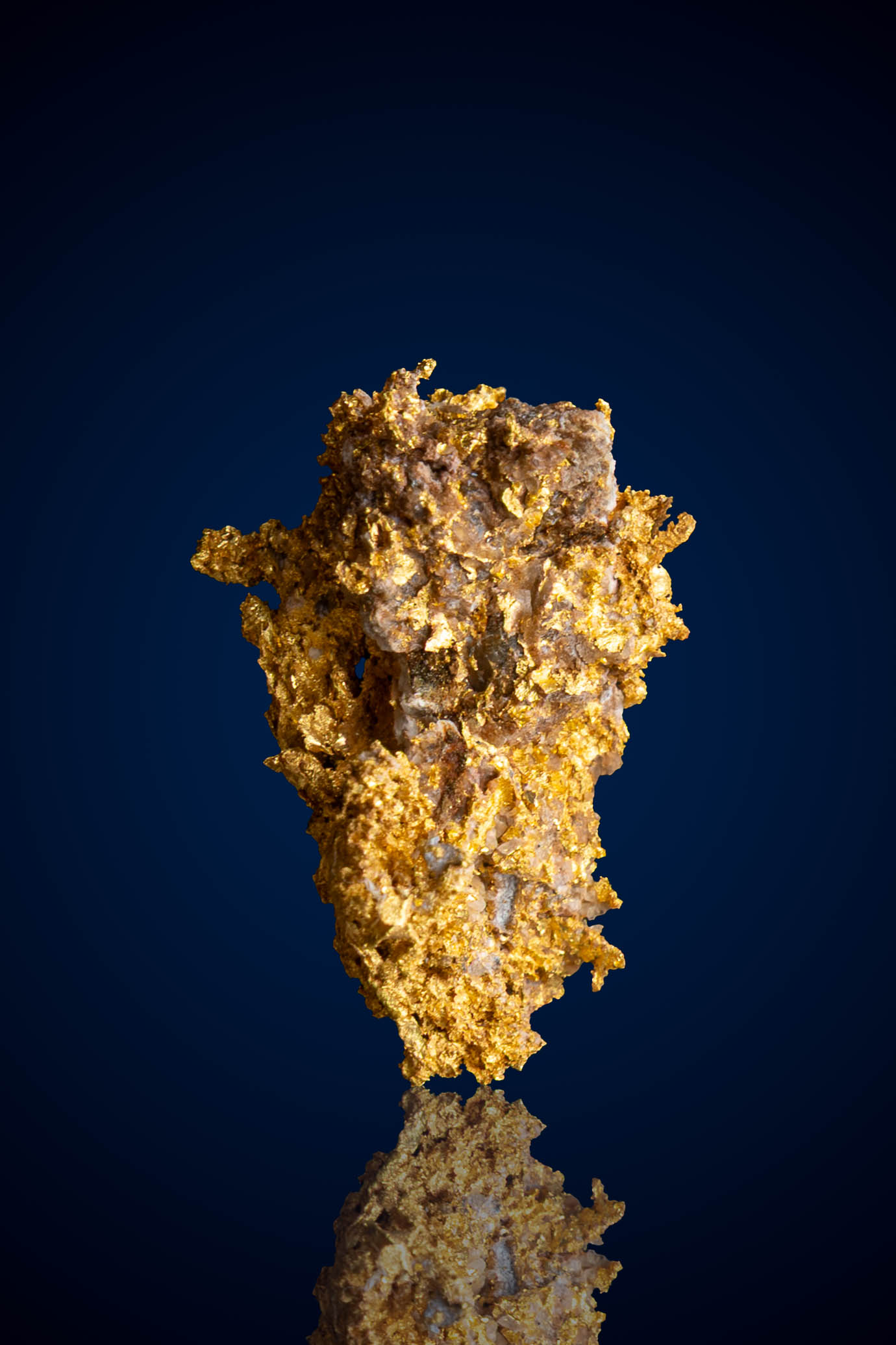 Even rarer are crystallized gold specimens and only about 0.04% of the gold in the world is crystallized. These natural gold nuggets and gold specimens are true - one of a kind - masterpieces from the earth’s natural elements and are found mostly in pockets where the gold was able to crystallize while it formed, much the same way other crystals form deep inside the earth.