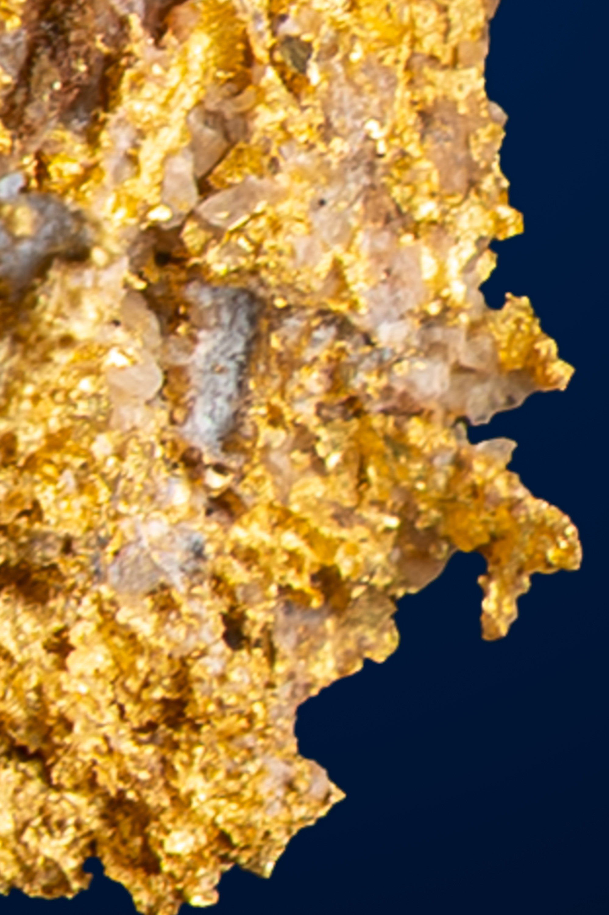 Recovered from the legendary Lost Mine of Australia, this exceptional gold nugget showcases the bold, organic character that makes Australian gold so highly sought after. Its intricate, coral-like structure features a richly textured surface with natural cavities and sculpted contours formed over millennia. The nugget displays a deep, buttery gold tone with areas of crystalline sparkle, beautifully contrasted by subtle quartz remnants that speak to its original matrix.
