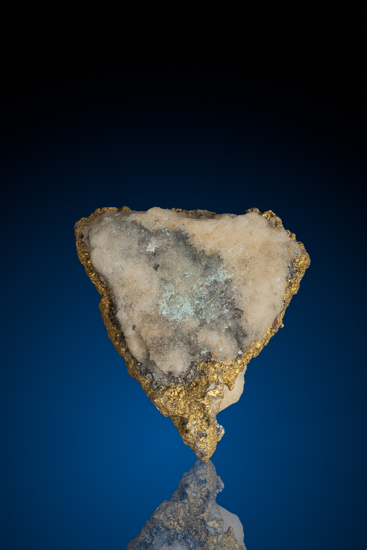 This striking gold-in-quartz vein specimen from Nevada is a beautiful representation of classic hard-rock gold formation. Rich, naturally occurring gold is interwoven through a solid matrix of milky white quartz, creating a compelling contrast between warm metallic tones and cool stone. The gold presents in irregular veinlets and patches, highlighting the path of mineralizing fluids that once coursed through the host rock deep within the Earth.
