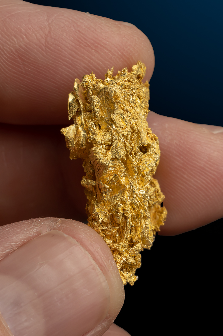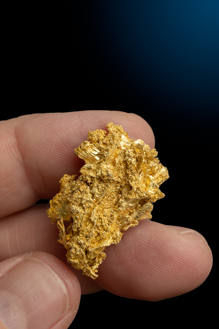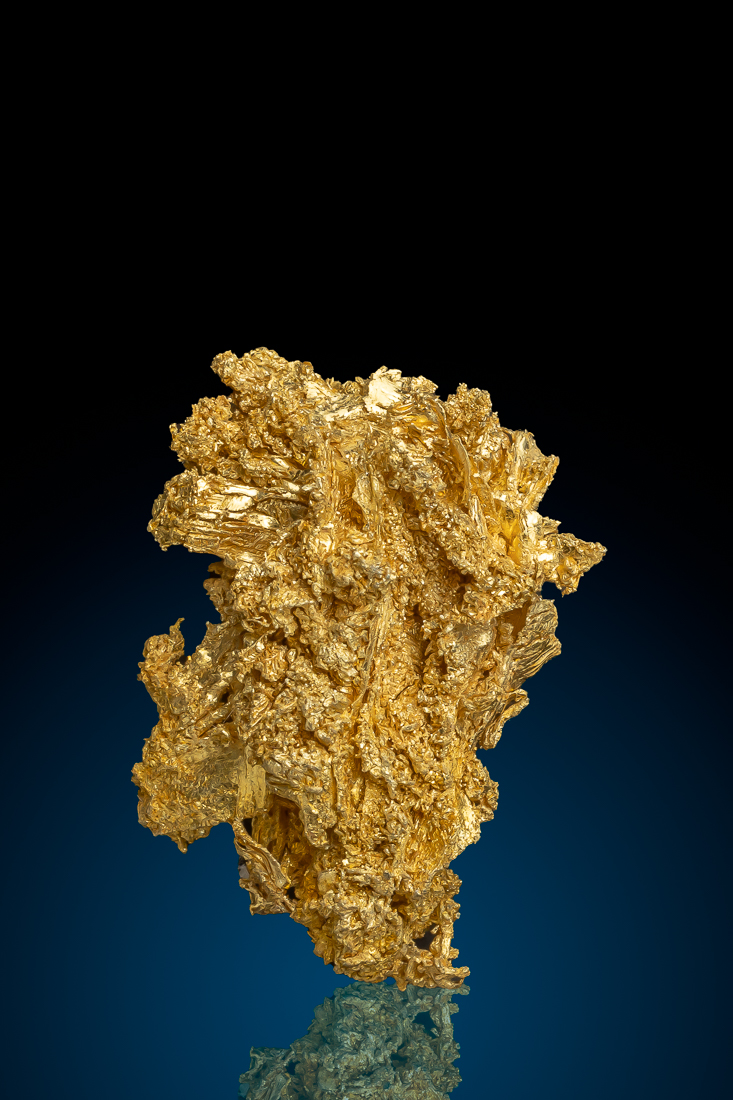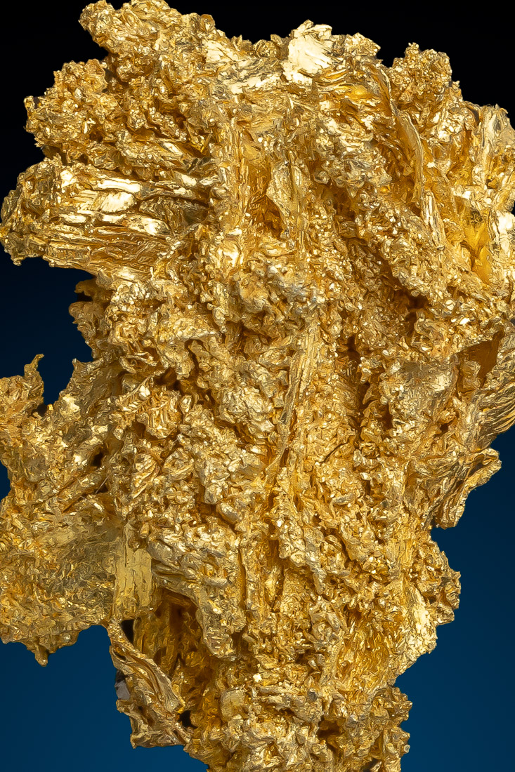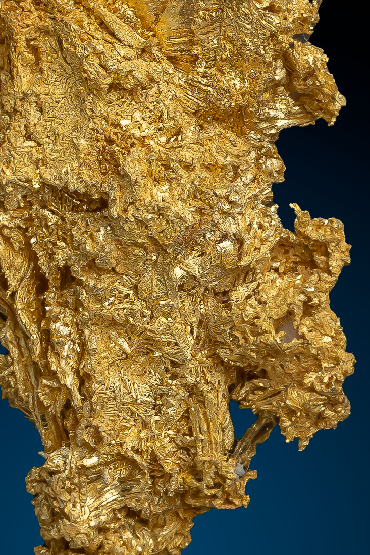 A stunning cluster of crystallized gold with wires, leaves and faceted crystals on this very intricate gold specimen. The color is exceptional and is a constant and buttery yellow gold. Without any doubt, this could only be a piece of gold from the famous Round Mountain Gold Mine in Nye County, Nevada. The gold that came from this mine is like none other in the world and this piece is an exquisite example with sharp crystallization and wonderful herringbone leaves clustered together. It really doesn't get any better than Round Mountain and this piece showcases why it is so highly sought after and collectable.