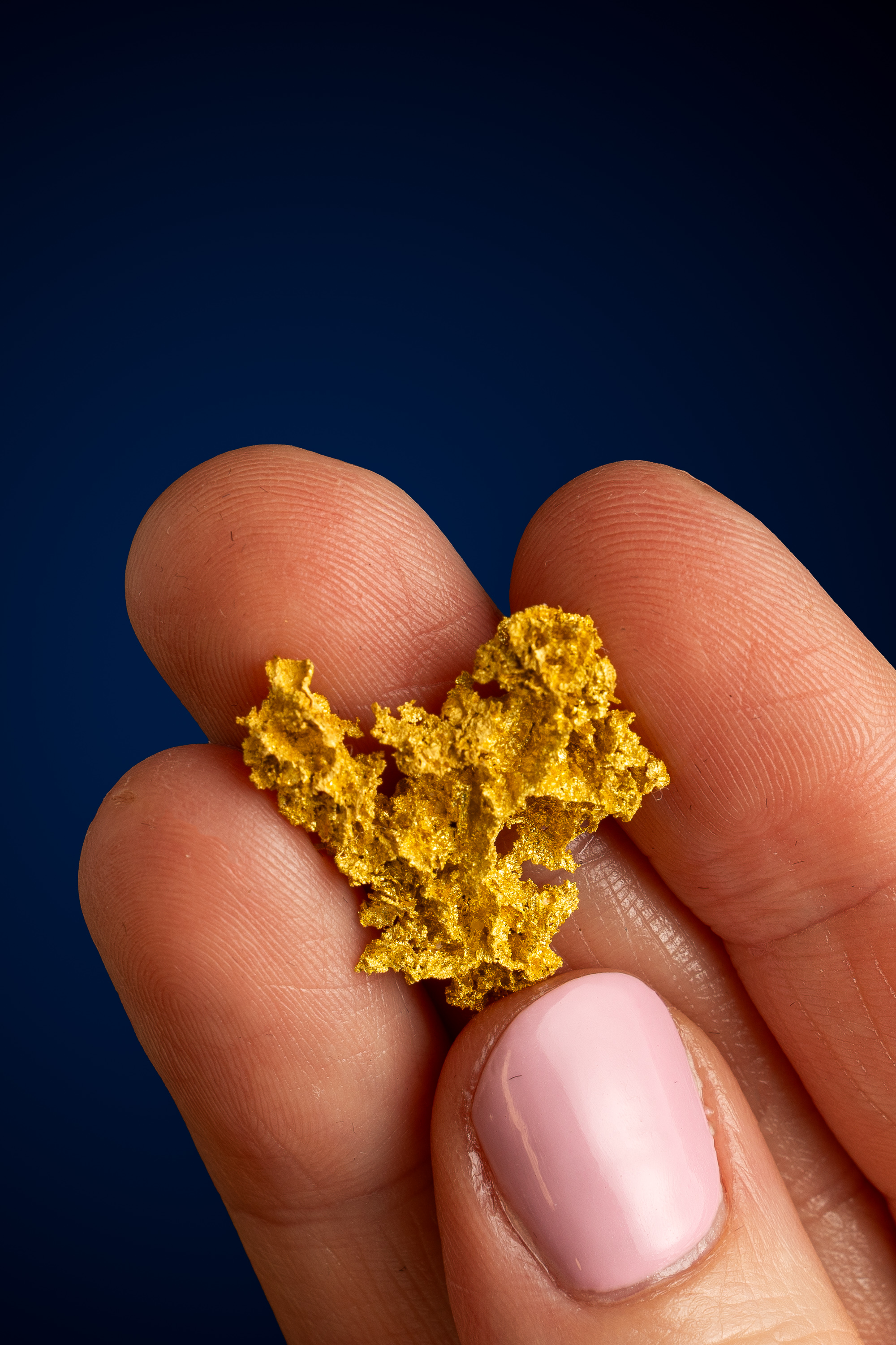 Even rarer are crystallized gold specimens and only about 0.04% of the gold in the world is crystallized. These natural gold nuggets and gold specimens are true - one of a kind - masterpieces from the earth’s natural elements and are found mostly in pockets where the gold was able to crystallize while it formed, much the same way other crystals form deep inside the earth.