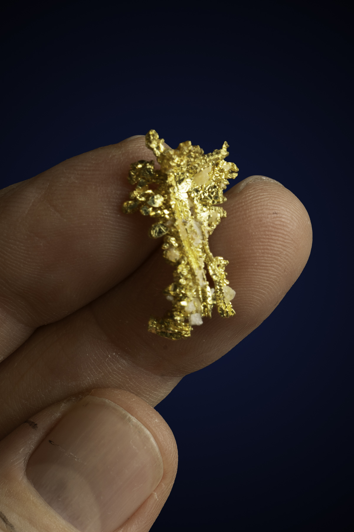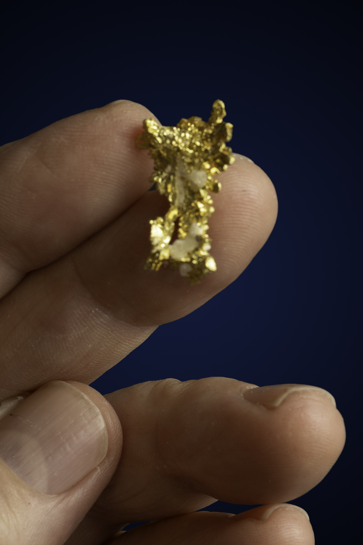 Even rarer are crystallized gold specimens and only about 0.04% of the gold in the world is crystallized. These natural gold nuggets and gold specimens are true - one of a kind - masterpieces from the earth’s natural elements and are found mostly in pockets where the gold was able to crystallize while it formed, much the same way other crystals form deep inside the earth.
