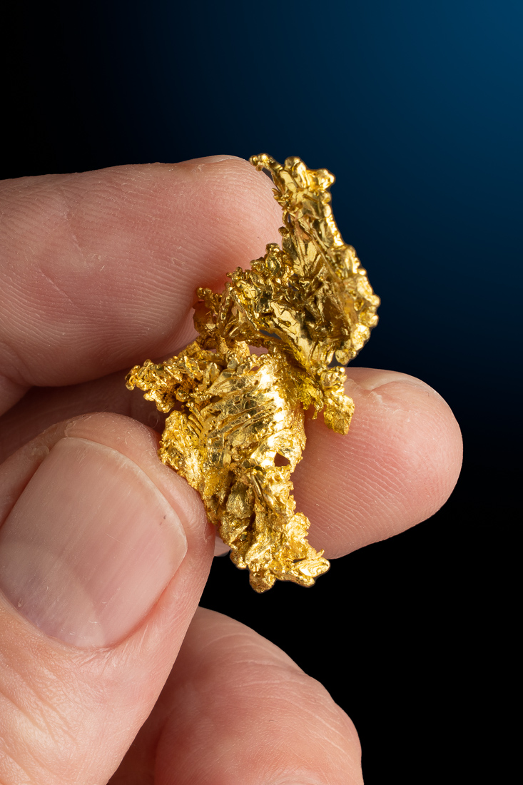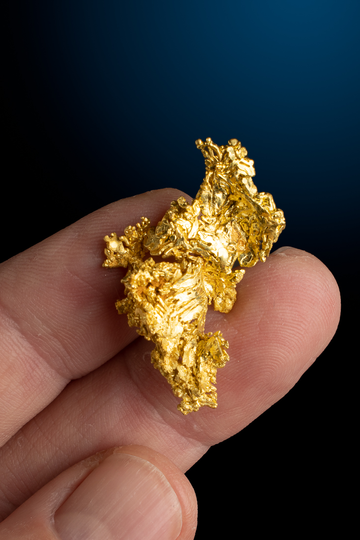 Even rarer are crystallized gold specimens and only about 0.04% of the gold in the world is crystallized. These natural gold nuggets and gold specimens are true - one of a kind - masterpieces from the earth’s natural elements and are found mostly in pockets where the gold was able to crystallize while it formed, much the same way other crystals form deep inside the earth.