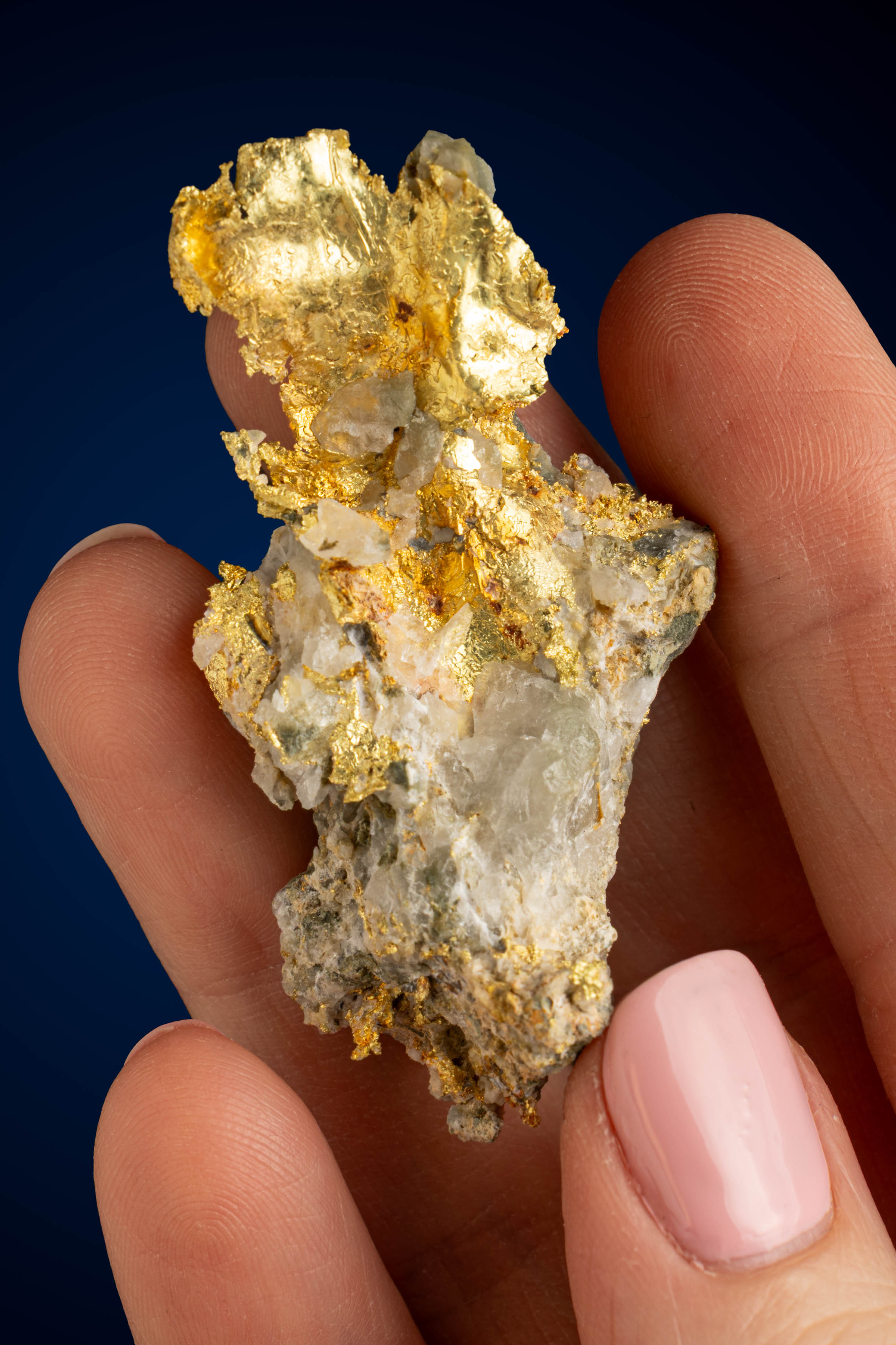 Even rarer are crystallized gold specimens and only about 0.04% of the gold in the world is crystallized. These natural gold nuggets and gold specimens are true - one of a kind - masterpieces from the earth’s natural elements and are found mostly in pockets where the gold was able to crystallize while it formed, much the same way other crystals form deep inside the earth.