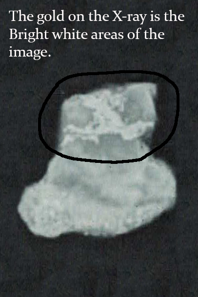 An intricate natural gold and quartz specimen that still has the host rock "shale" attached on the top and bottom. This piece has an estimated 12 to 15 grams of gold inside and is considered a project piece with lots of gold still left to uncover. The X-ray in the photos was done by the prospector Ed and shows the gold still hidden underneath the quartz. I'm honored to have this piece of natural gold and this gold collection on the website. This gold was found by my good friend and mentor, Ed. Being a prospector for 36 years, Ed has traveled the world extensively with his metal detector and found hundreds of gold nuggets and gold specimens. Click the video below to learn more about Ed and his beautiful collection of gold available on this website.