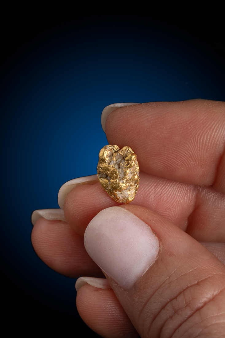 Even rarer are crystallized gold specimens and only about 0.04% of the gold in the world is crystallized. These natural gold nuggets and gold specimens are true - one of a kind - masterpieces from the earth’s natural elements and are found mostly in pockets where the gold was able to crystallize while it formed, much the same way other crystals form deep inside the earth.