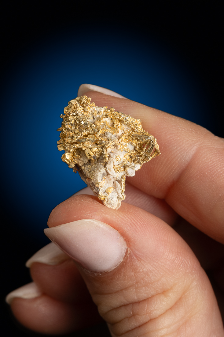 Even rarer are crystallized gold specimens and only about 0.04% of the gold in the world is crystallized. These natural gold nuggets and gold specimens are true - one of a kind - masterpieces from the earth’s natural elements and are found mostly in pockets where the gold was able to crystallize while it formed, much the same way other crystals form deep inside the earth.