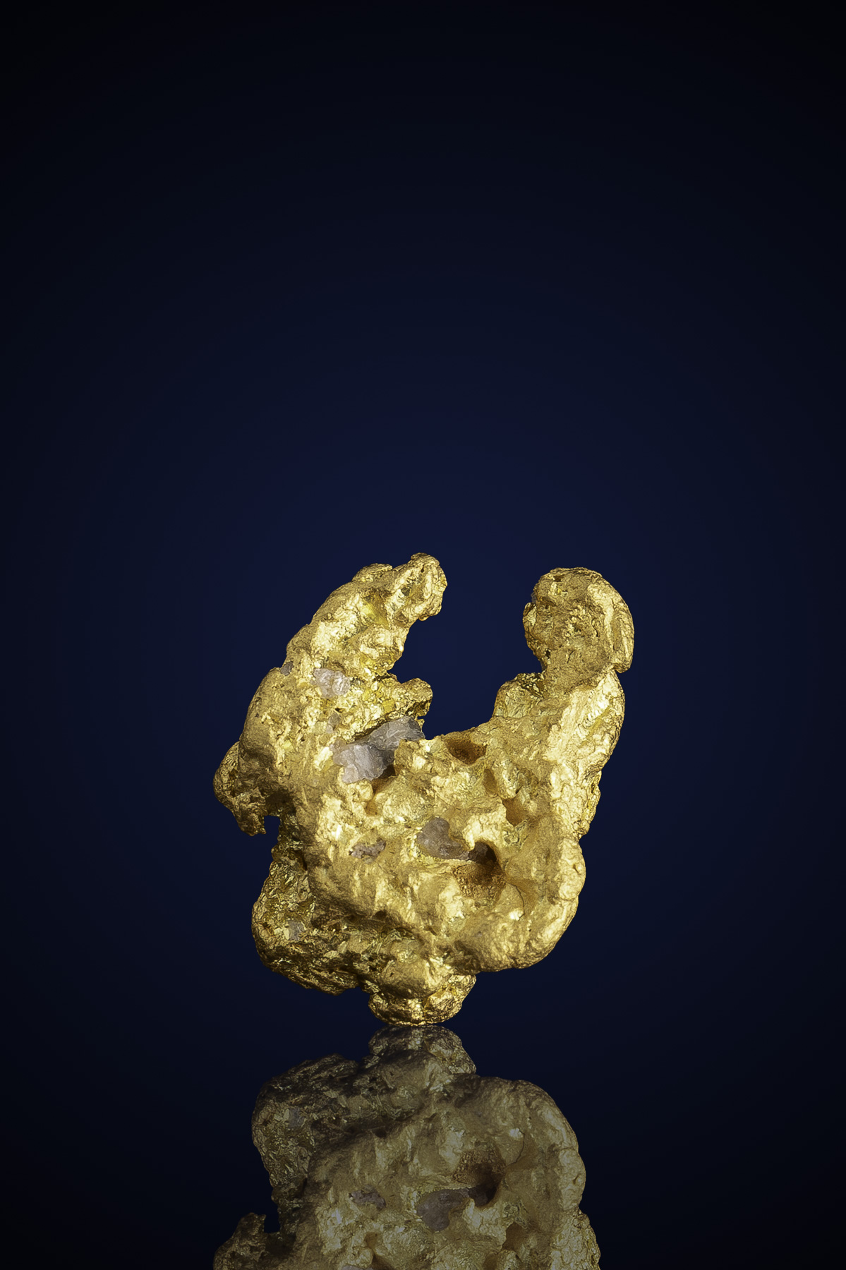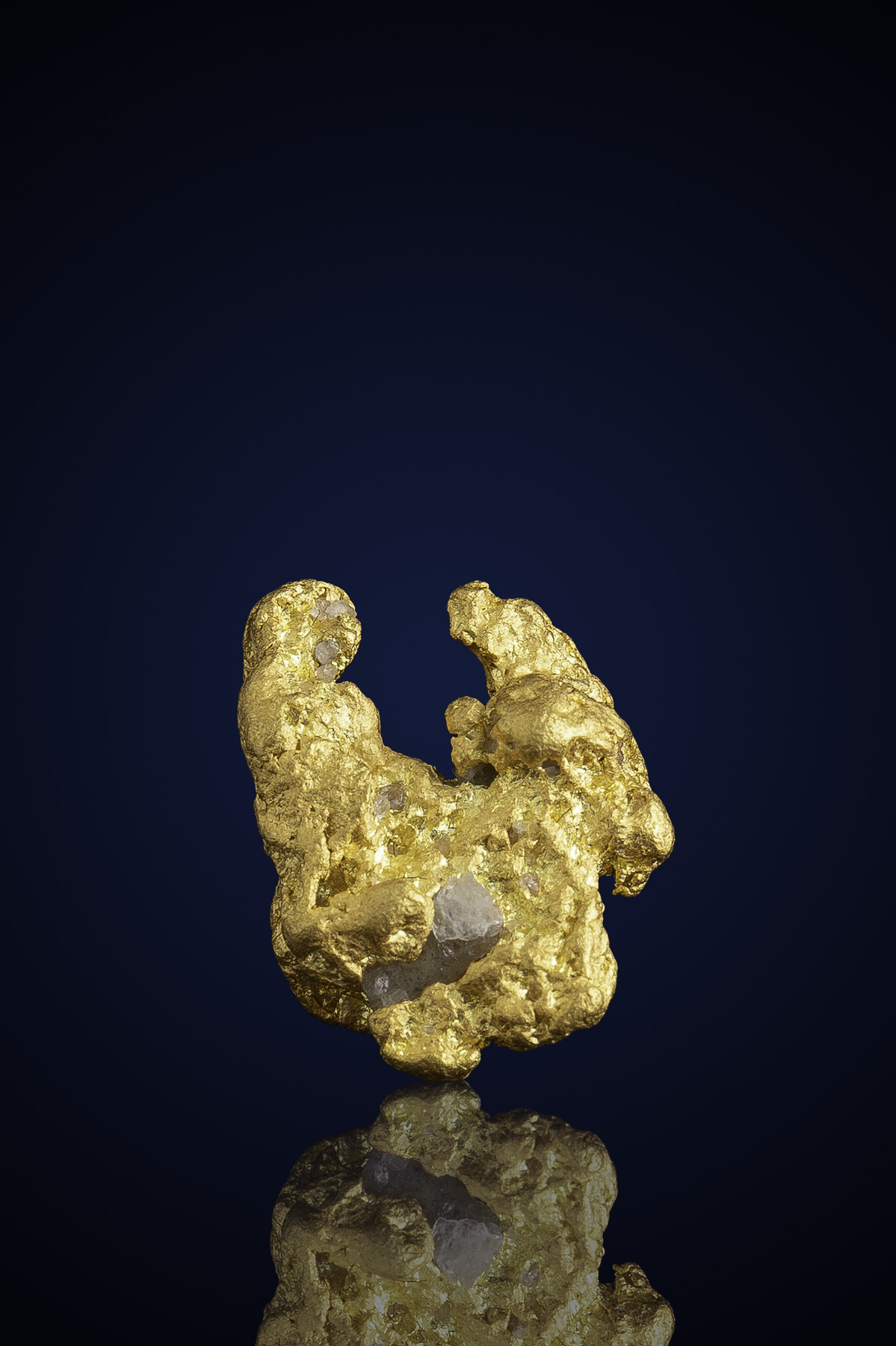 Even rarer are crystallized gold specimens and only about 0.04% of the gold in the world is crystallized. These natural gold nuggets and gold specimens are true - one of a kind - masterpieces from the earth’s natural elements and are found mostly in pockets where the gold was able to crystallize while it formed, much the same way other crystals form deep inside the earth.