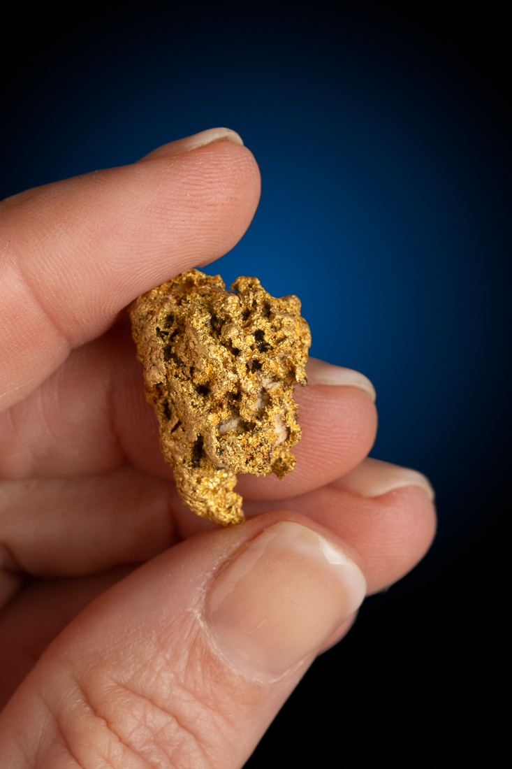 Even rarer are crystallized gold specimens and only about 0.04% of the gold in the world is crystallized. These natural gold nuggets and gold specimens are true - one of a kind - masterpieces from the earth’s natural elements and are found mostly in pockets where the gold was able to crystallize while it formed, much the same way other crystals form deep inside the earth.