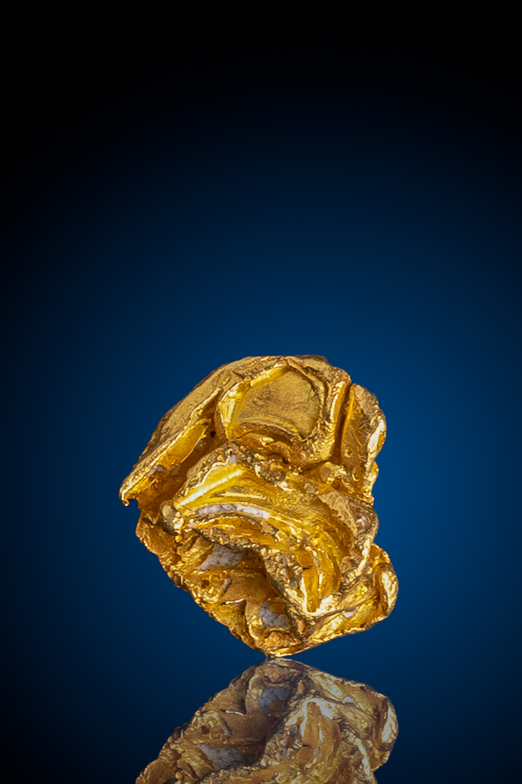 Even rarer are crystallized gold specimens and only about 0.04% of the gold in the world is crystallized. These natural gold nuggets and gold specimens are true - one of a kind - masterpieces from the earth’s natural elements and are found mostly in pockets where the gold was able to crystallize while it formed, much the same way other crystals form deep inside the earth.