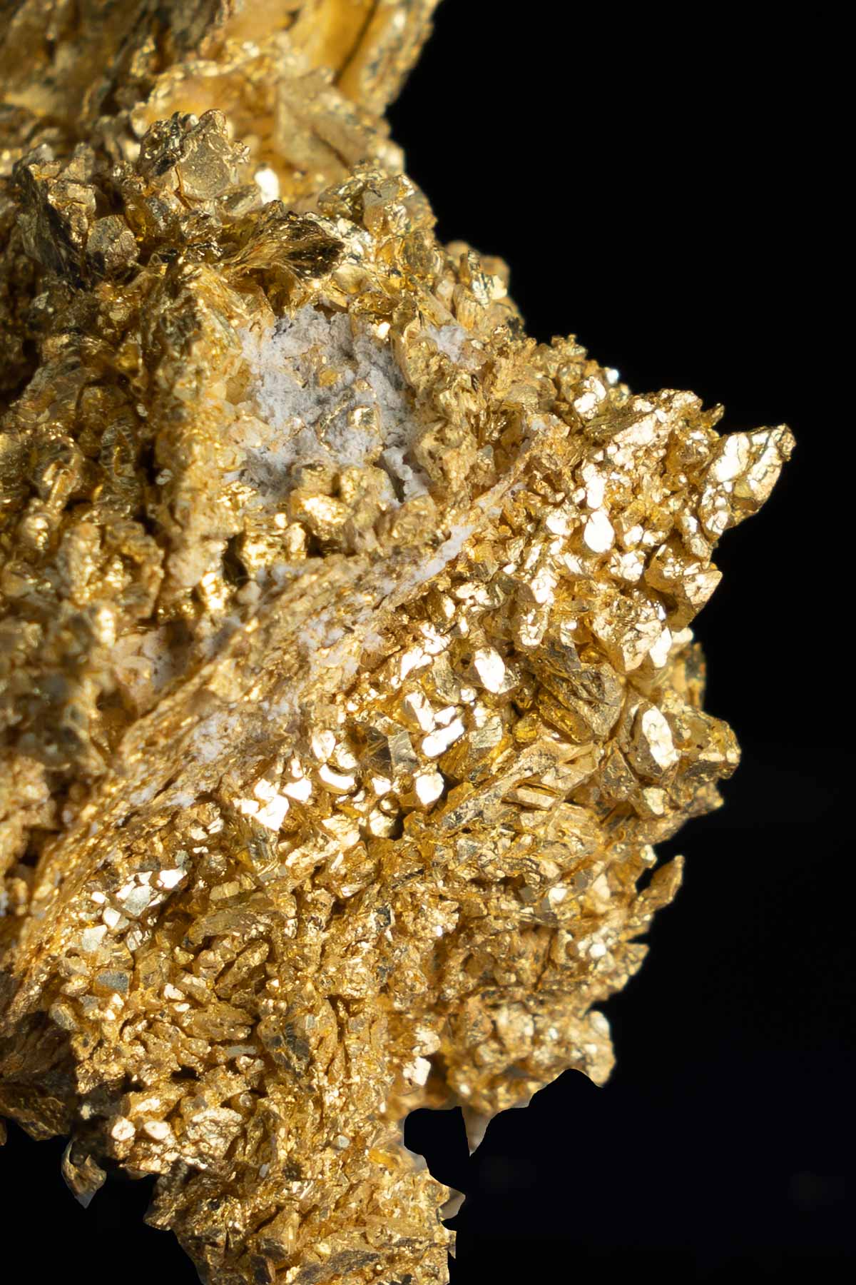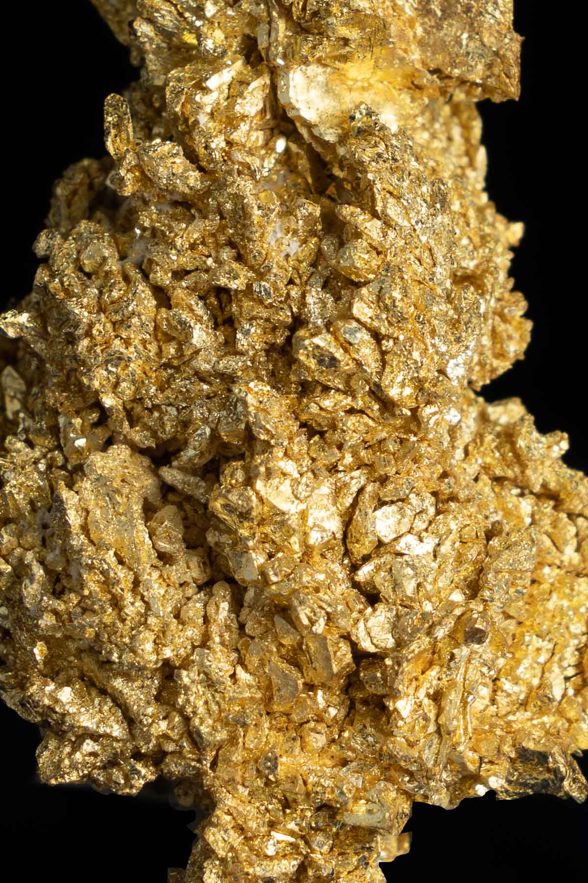 A beautiful example of the unique crystalized gold that came from the Famous Round Mountain Gold Mine in Nye County, Nevada. The phenomenon and discovery of high-grade gold veins were discovered in the late 1990's at this Nevada location and set off a frenzy in the natural gold world as gold of this caliber was extremely rare and unlike any other gold in the world. The gold is now considered some of the best crystalized gold in the world and is very rare now that the mine is no longer finding or preserving any crystallized gold.