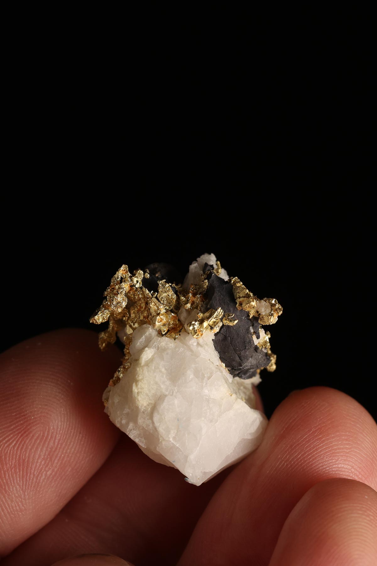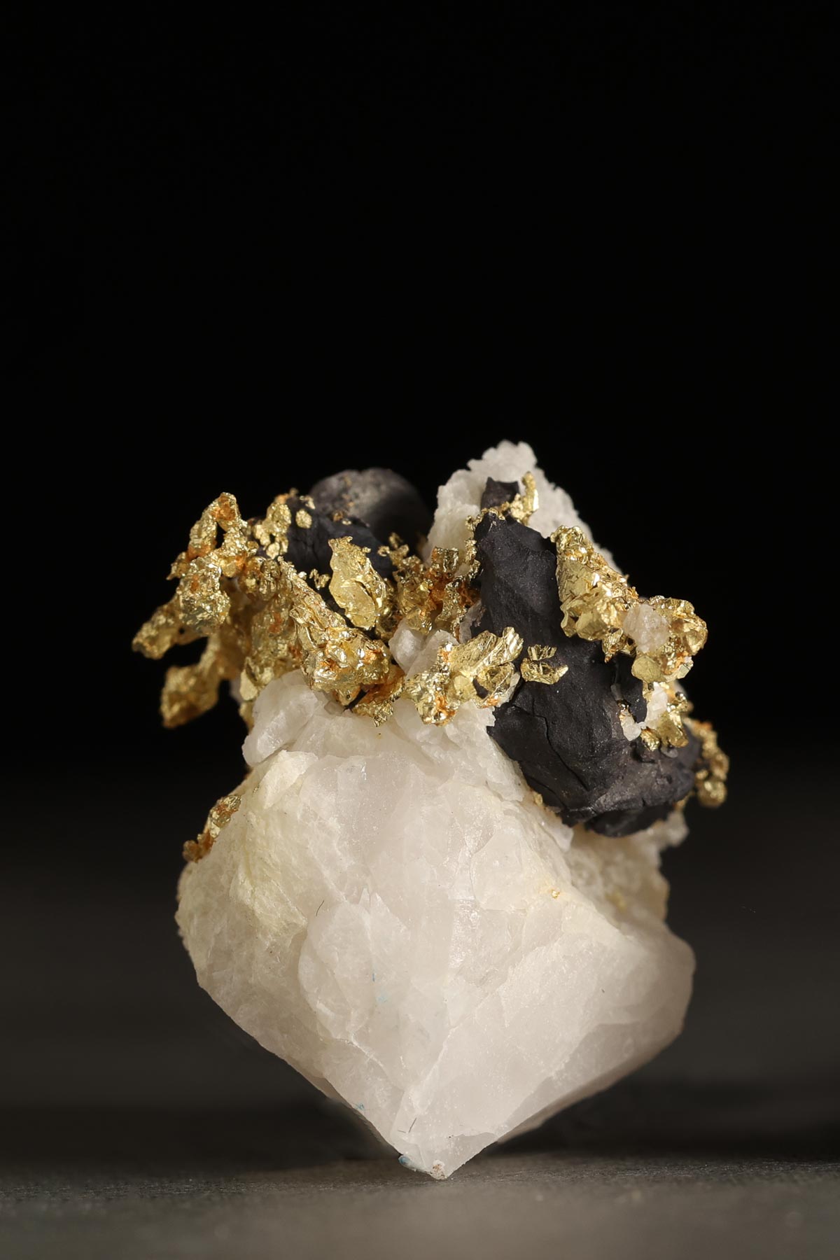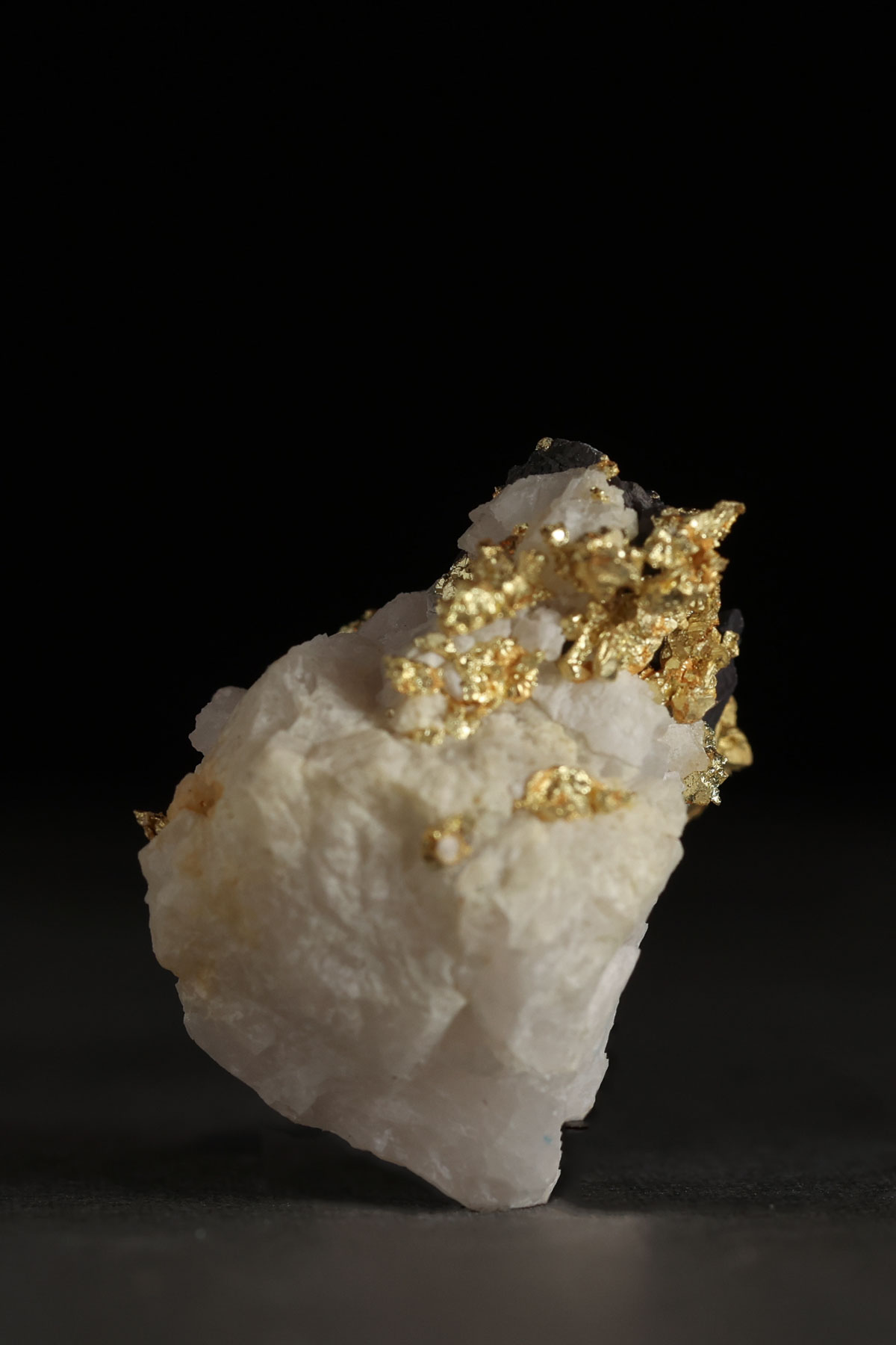 The gold and arsenopyrite specimens from the Oriental Gold Mine in the Allegheny District of California are some exceptional gold specimens and create a beautiful contrast between the Brilliant crystallized yellow gold, white quartz, and black arsenopyrite. These were part of the owner Dolald Dickey's private collection and he preserved what he thought was special from the mine and melted the rest. The mine has long been closed and these are what remains from the location.