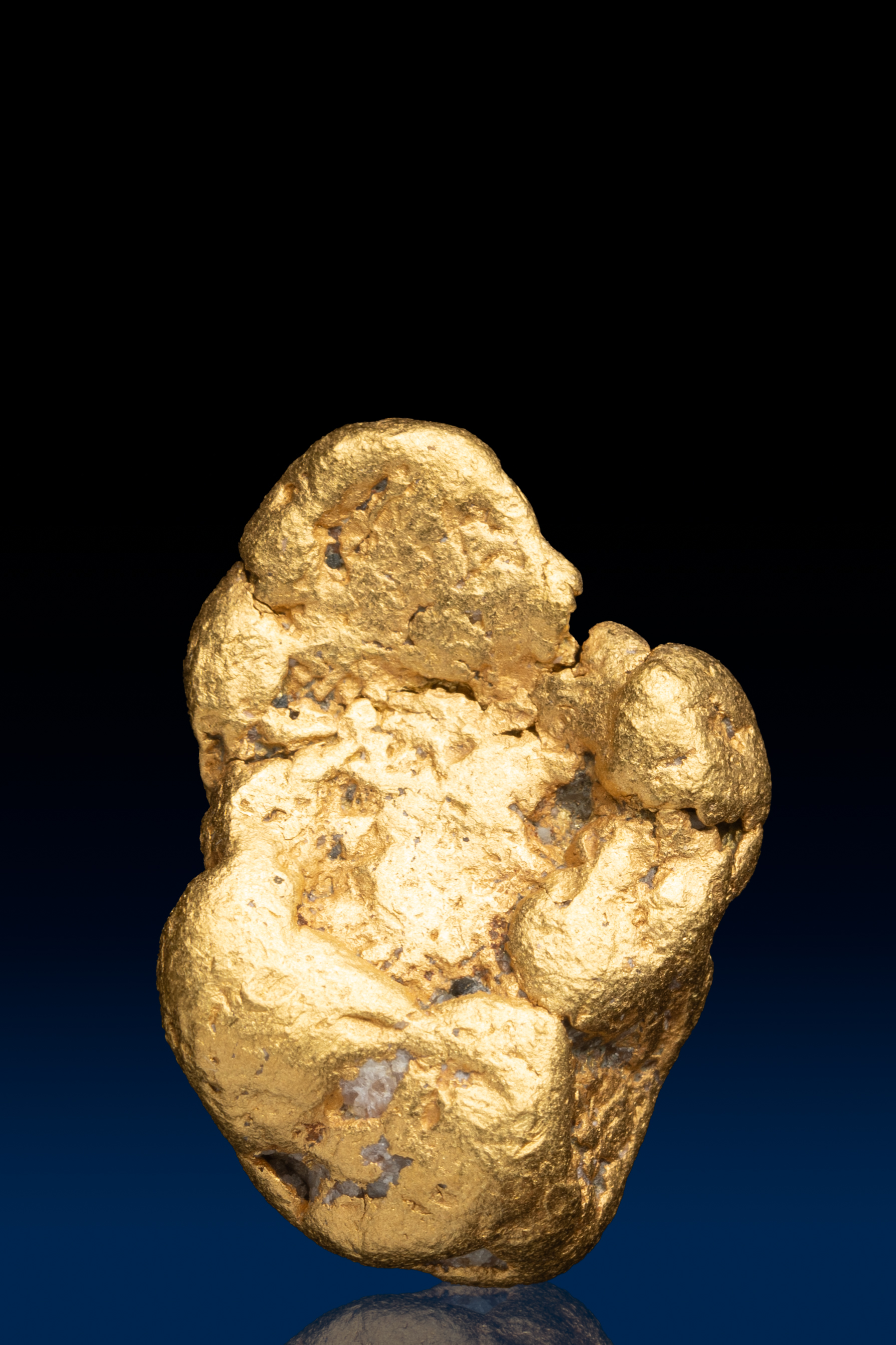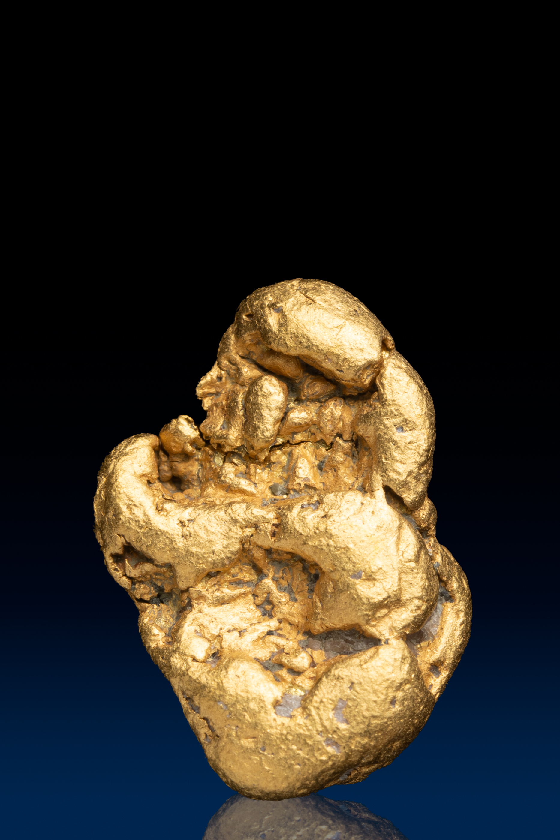 Even rarer are crystallized gold specimens and only about 0.04% of the gold in the world is crystallized. These natural gold nuggets and gold specimens are true - one of a kind - masterpieces from the earth’s natural elements and are found mostly in pockets where the gold was able to crystallize while it formed, much the same way other crystals form deep inside the earth.