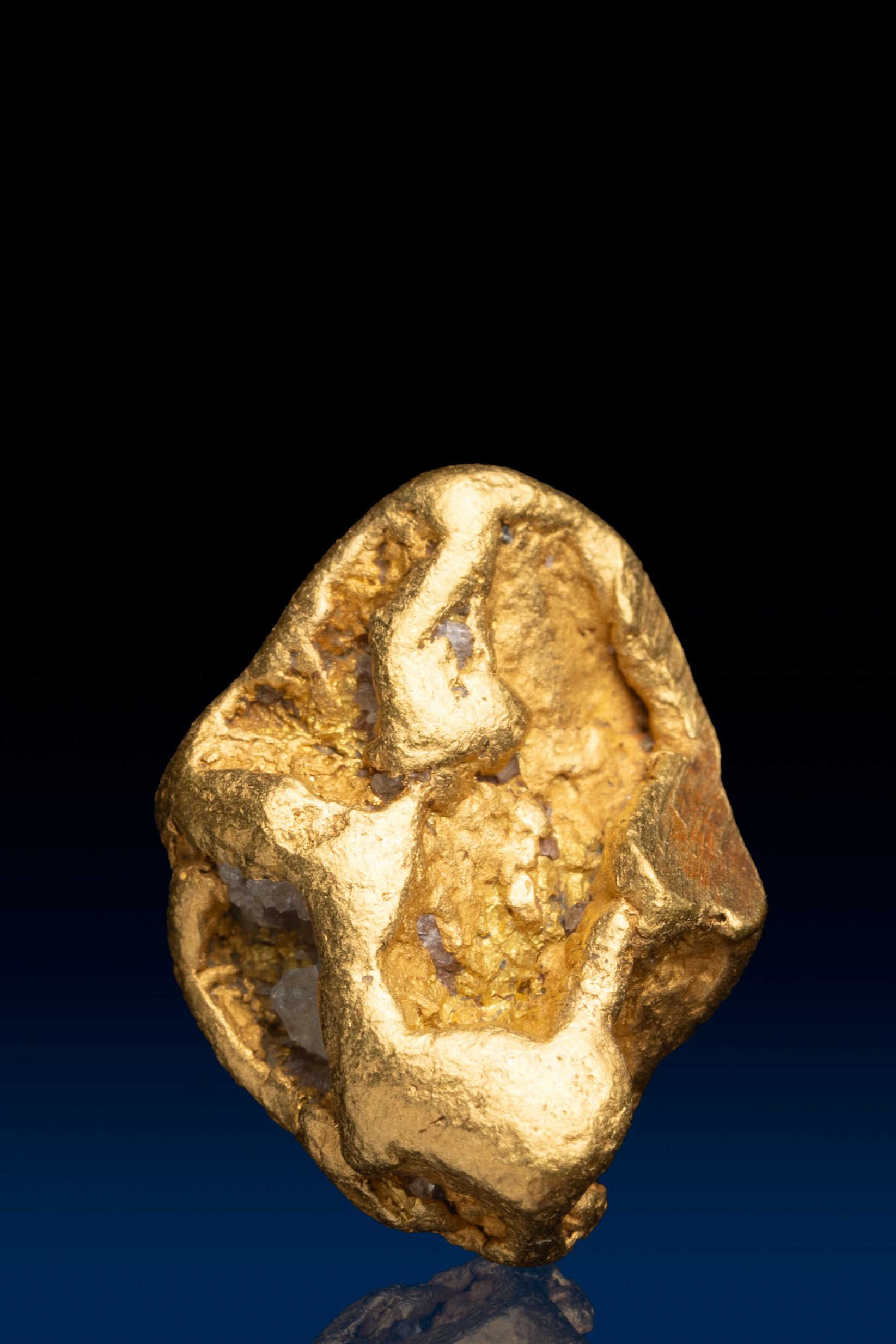 Even rarer are crystallized gold specimens and only about 0.04% of the gold in the world is crystallized. These natural gold nuggets and gold specimens are true - one of a kind - masterpieces from the earth’s natural elements and are found mostly in pockets where the gold was able to crystallize while it formed, much the same way other crystals form deep inside the earth.