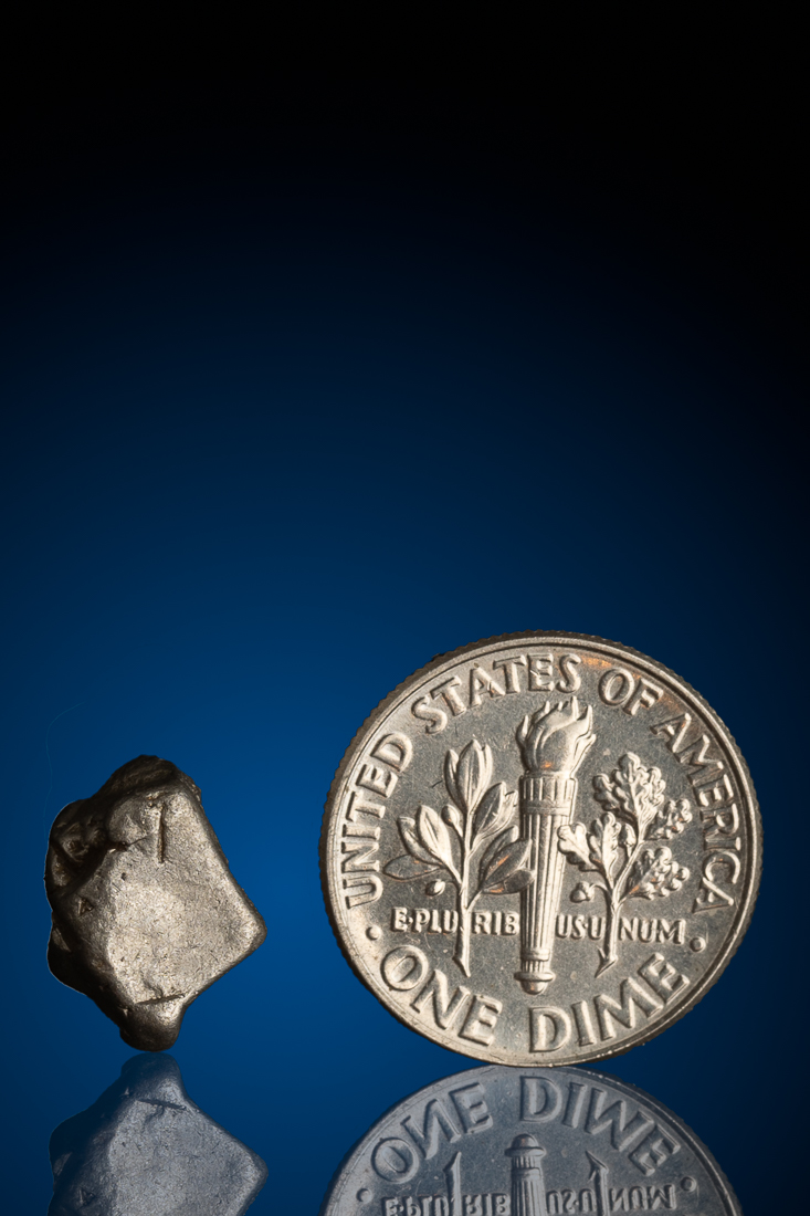 If all the gold ever mined could be brought together and melted into a cube, it would measure 60 feet by 60 feet - a small enough cube it would fit under the Eiffel tower. If all the platinum that has ever been mined could be brought together and melted into a cube, it would fit in a two-car garage. Most platinum is microscopic particles that are extracted from ore. Platinum nuggets are extremely rare, and platinum is the heaviest of the precious metals and very dense. Platinum from this region assays at 85% pure and I have a small collection that I was able to acquire from Khabarovskiy Kray, Russia.