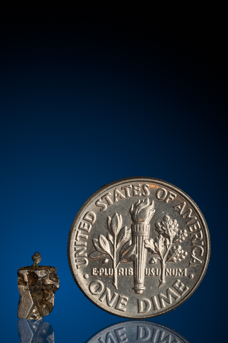 If all the gold ever mined could be brought together and melted into a cube, it would measure 60 feet by 60 feet - a small enough cube it would fit under the Eiffel tower. If all the platinum that has ever been mined could be brought together and melted into a cube, it would fit in a two-car garage. Most platinum is microscopic particles that are extracted from ore. Platinum nuggets are extremely rare, and platinum is the heaviest of the precious metals and very dense. Platinum from this region assays at 85% pure and I have a small collection that I was able to acquire from Khabarovskiy Kray, Russia.