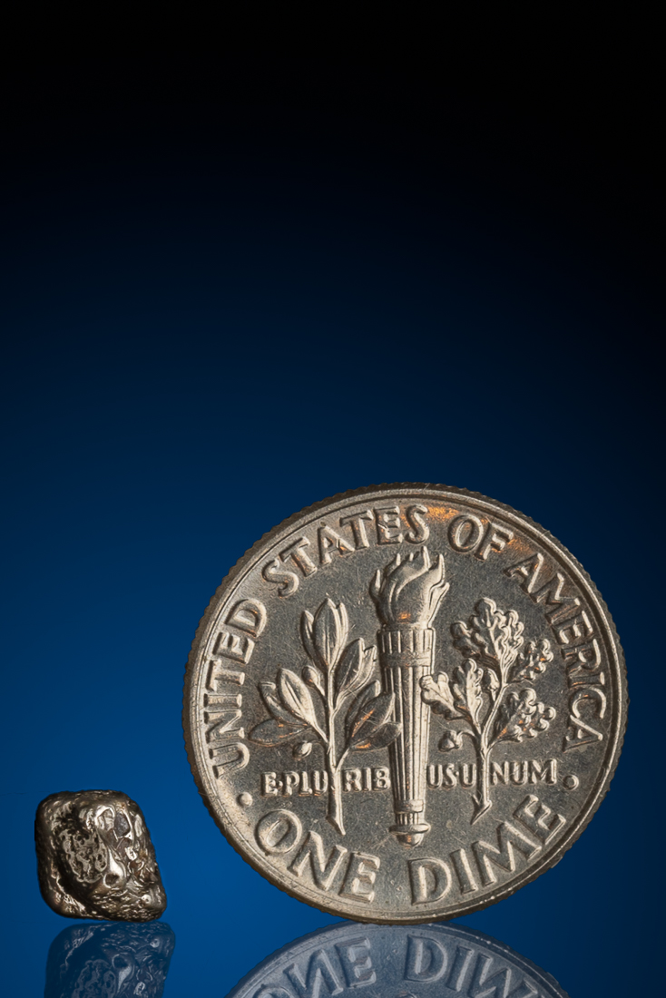 If all the gold ever mined could be brought together and melted into a cube, it would measure 60 feet by 60 feet - a small enough cube it would fit under the Eiffel tower. If all the platinum that has ever been mined could be brought together and melted into a cube, it would fit in a two-car garage. Most platinum is microscopic particles that are extracted from ore. Platinum nuggets are extremely rare, and platinum is the heaviest of the precious metals and very dense. Platinum from this region assays at 85% pure and I have a small collection that I was able to acquire from Khabarovskiy Kray, Russia.
