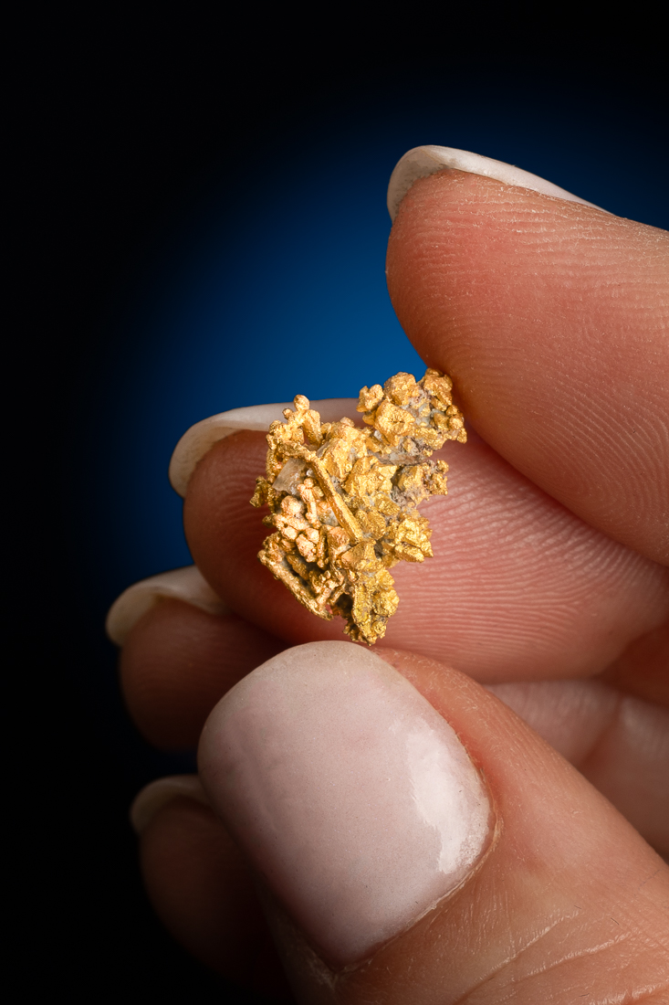 Even rarer are crystallized gold specimens and only about 0.04% of the gold in the world is crystallized. These natural gold nuggets and gold specimens are true - one of a kind - masterpieces from the earth’s natural elements and are found mostly in pockets where the gold was able to crystallize while it formed, much the same way other crystals form deep inside the earth.