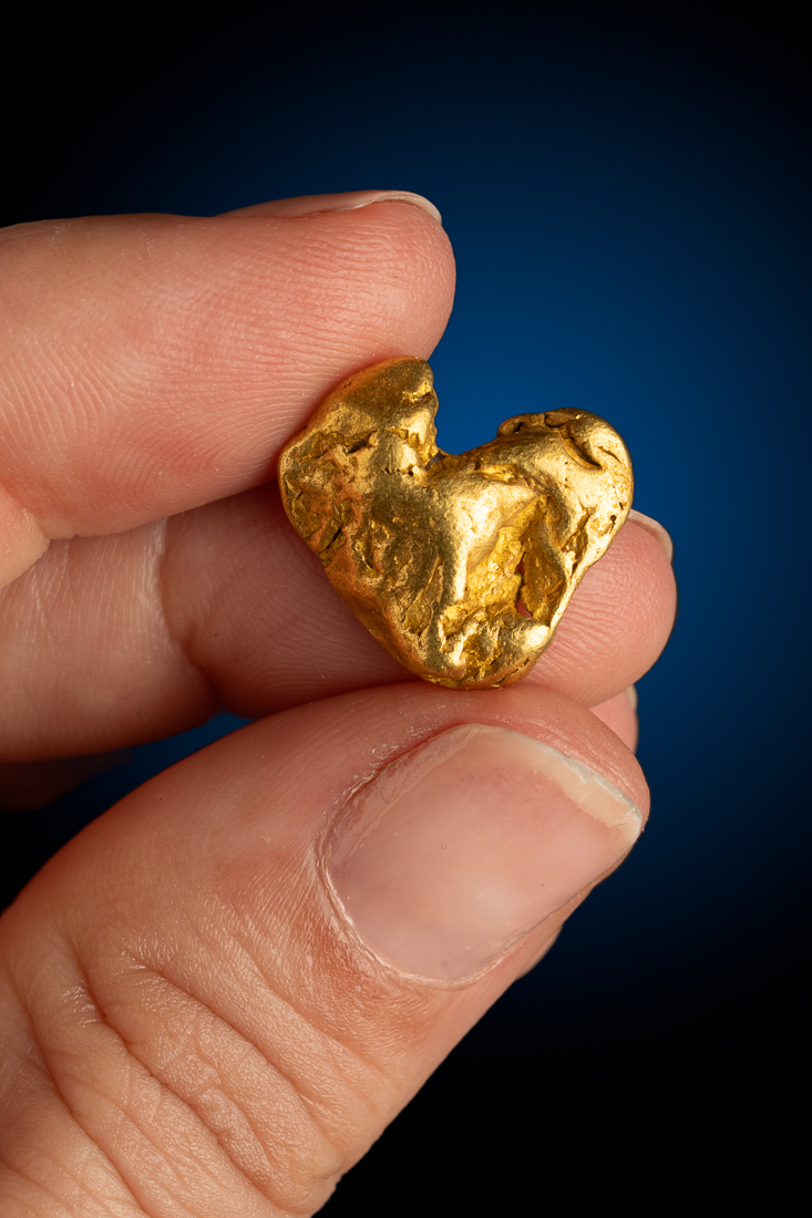 Even rarer are crystallized gold specimens and only about 0.04% of the gold in the world is crystallized. These natural gold nuggets and gold specimens are true - one of a kind - masterpieces from the earth’s natural elements and are found mostly in pockets where the gold was able to crystallize while it formed, much the same way other crystals form deep inside the earth.