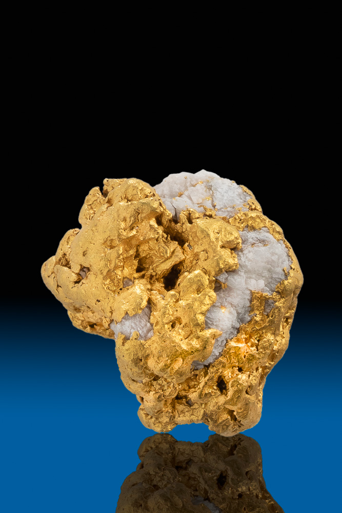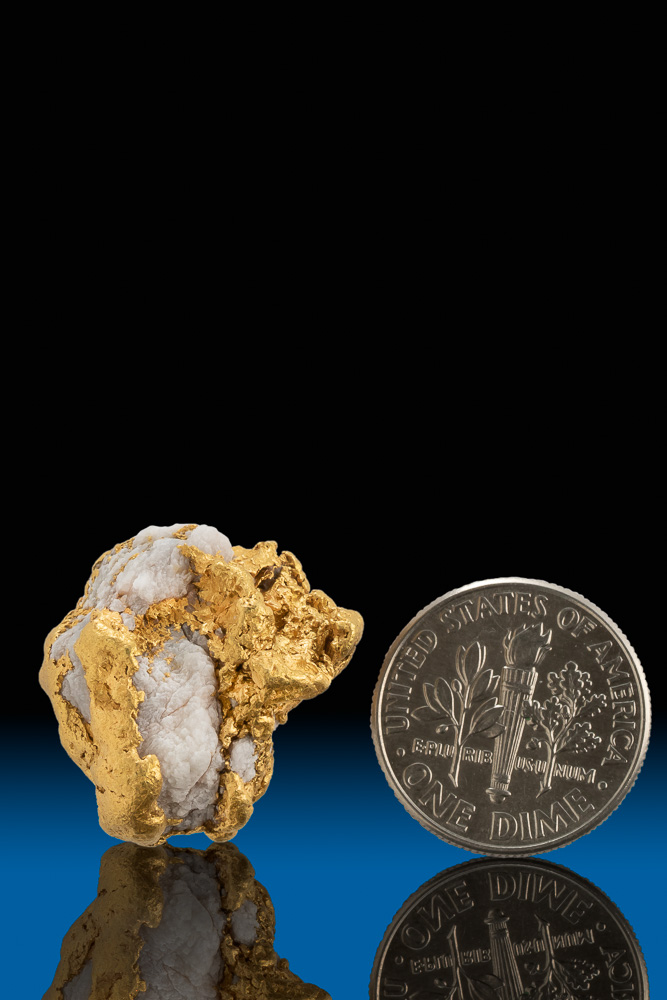 A brilliant and intricate natural gold and quartz nugget. Natural Gold nuggets with quartz still attached are considered more rare than placer gold nuggets and they typically have not traveled or been as worn down "river worn." I hand select these beautiful gold nuggets for the website during my travels up north through Alaska.