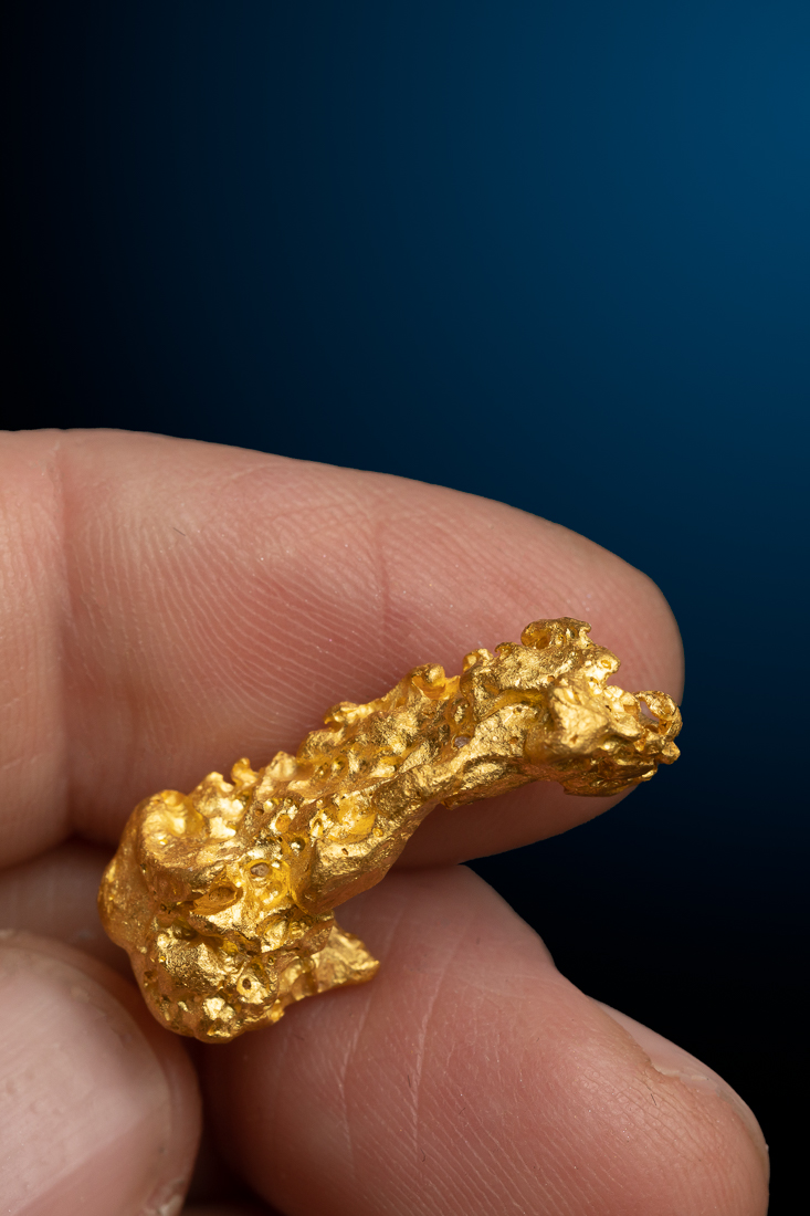 Even rarer are crystallized gold specimens and only about 0.04% of the gold in the world is crystallized. These natural gold nuggets and gold specimens are true - one of a kind - masterpieces from the earth’s natural elements and are found mostly in pockets where the gold was able to crystallize while it formed, much the same way other crystals form deep inside the earth.