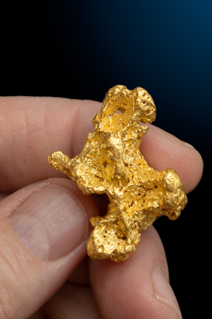 Even rarer are crystallized gold specimens and only about 0.04% of the gold in the world is crystallized. These natural gold nuggets and gold specimens are true - one of a kind - masterpieces from the earth’s natural elements and are found mostly in pockets where the gold was able to crystallize while it formed, much the same way other crystals form deep inside the earth.